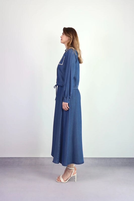 KOYU DENIM TAŞ İŞLEMELİ TENSEL TAKIM