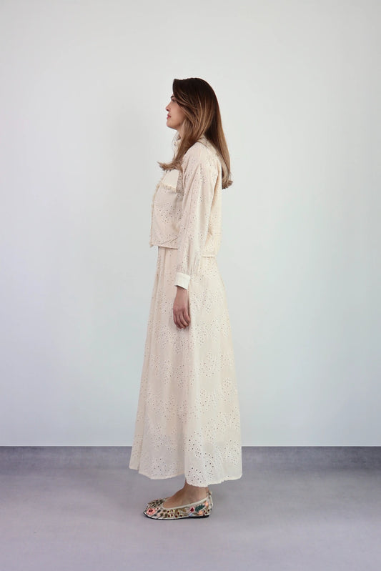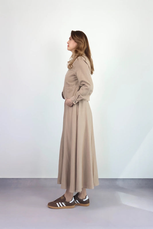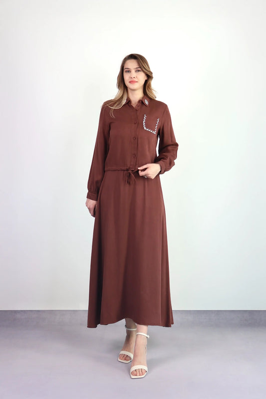 BEJ KAHVE NAKIŞ İŞLEMELİ GÖMLEK TAKIM
