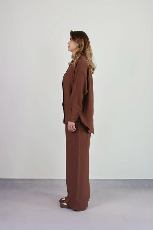 TükendiKAHVERENGİ MODAL GÖMLEK TAKIM