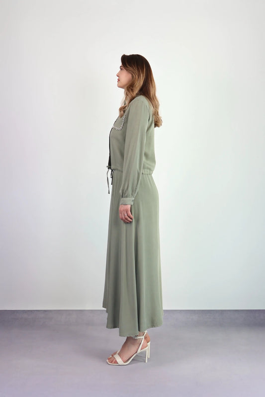 MINT YEŞİL TAŞ İŞLEMELİ TENSEL TAKIM