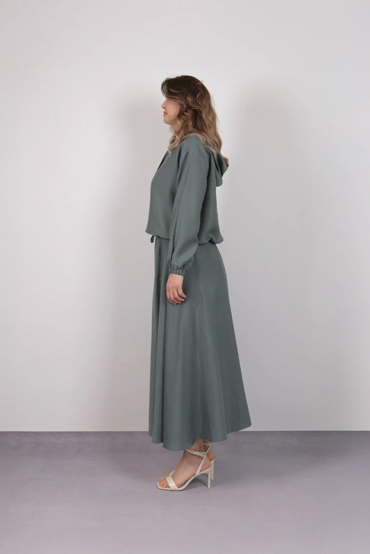 PETROL YEŞİLİ LYOCELL KAPÜŞONLU ETEK TAKIM