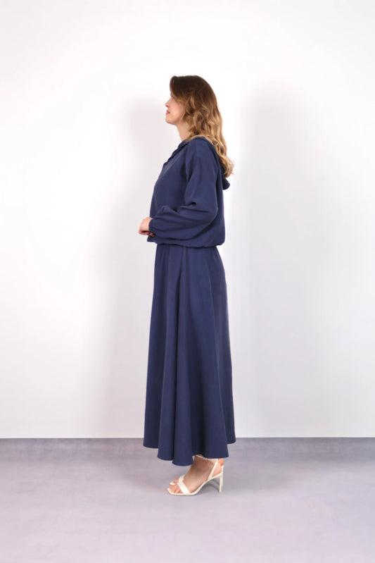 LACİVERT LYOCELL KAPÜŞONLU ETEK TAKIM