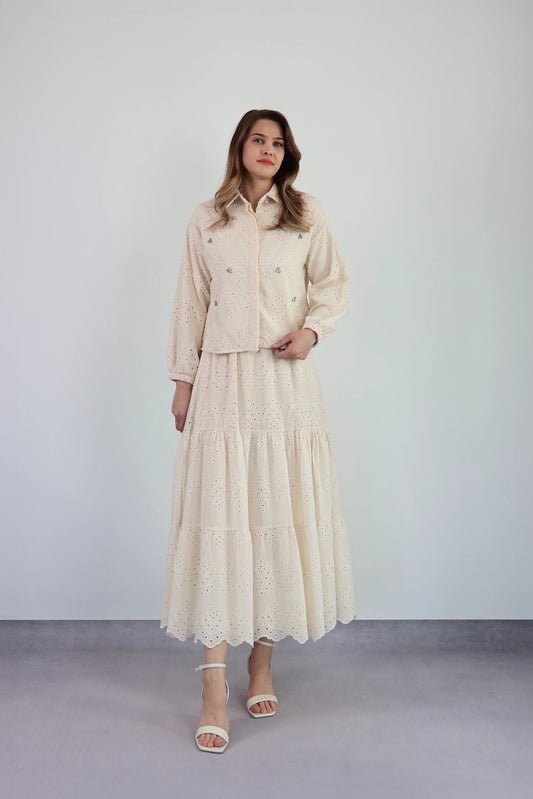 BEJ İNCİ DÜĞMELİ FİSTO ETEK TAKIM