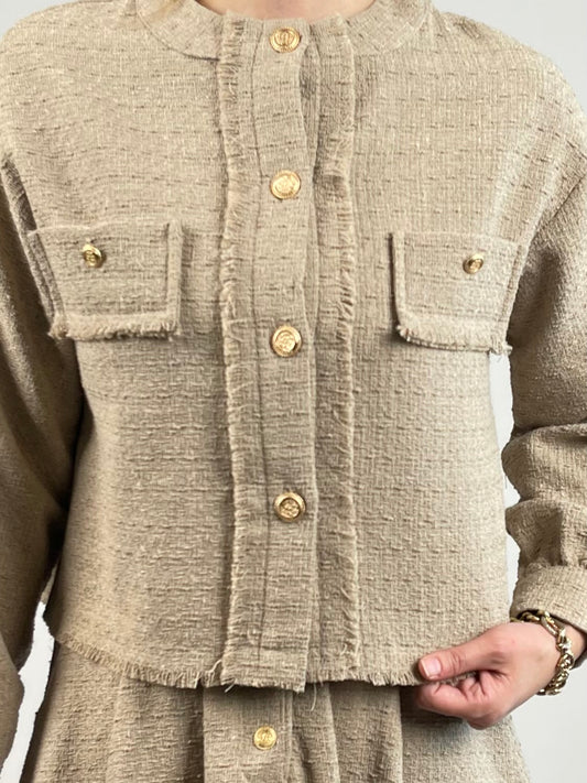 KAHVERENGİ BONCUK DETAYLI İKİLİ TAKIM