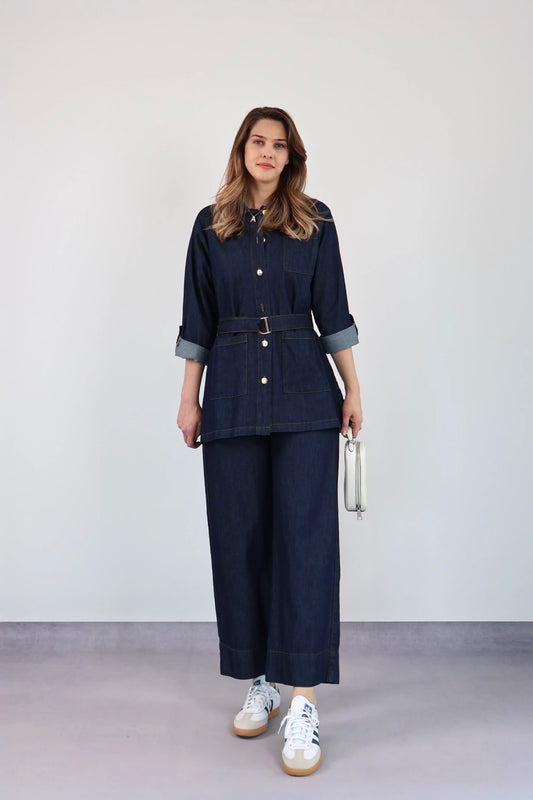 KOYU DENIM KEMERLİ PANTOLON TAKIM
