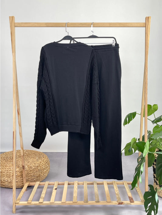 TükendiSİYAH TRİKO DETAY EŞOFMAN TAKIMI
