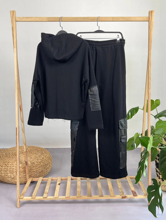 SİYAH TASARIM DETAY OVERSIZE EŞOFMAN TAKIM