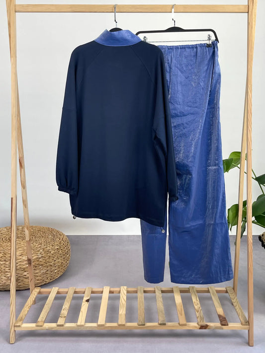 TükendiLACİVERT GARNİLİ PARLAK TAKIM