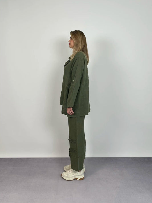 YAĞ YEŞİLİ FIRFIR DETAY KETEN TAKIM