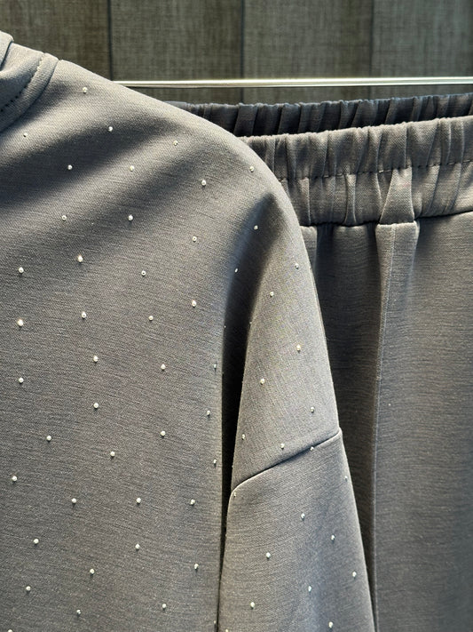 GRİ ÖNÜ TAŞLI FERMUAR DETAYLI PANTOLON TAKIM