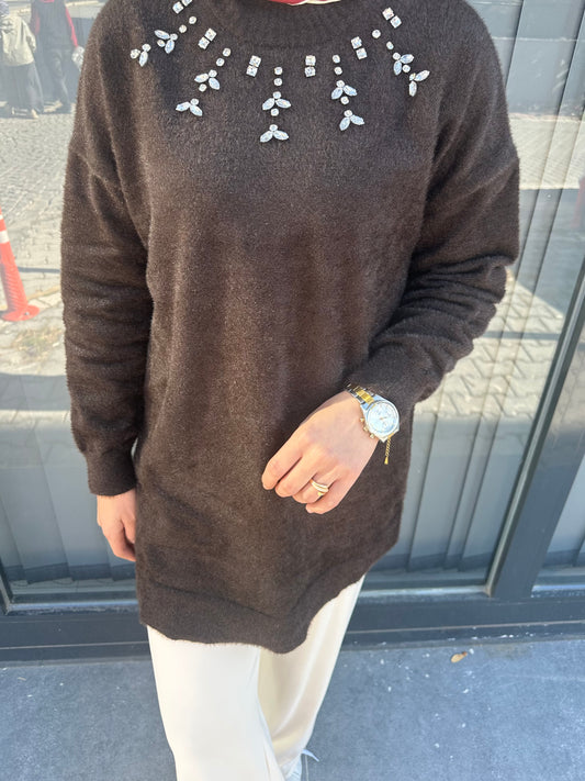 KAHVE ÖNÜ TAŞLI ANGORA KAZAK