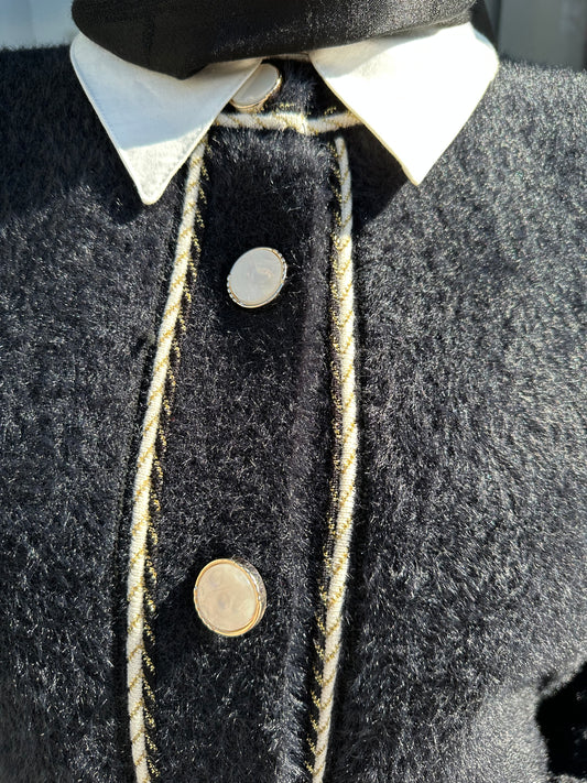 SİYAH BİSİKLET YAKA SİM DETAYLI ANGORA HIRKA