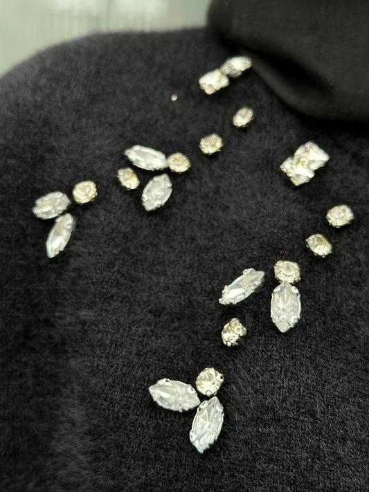 SİYAH OMUZLARI TAŞLI ANGORA KAZAK