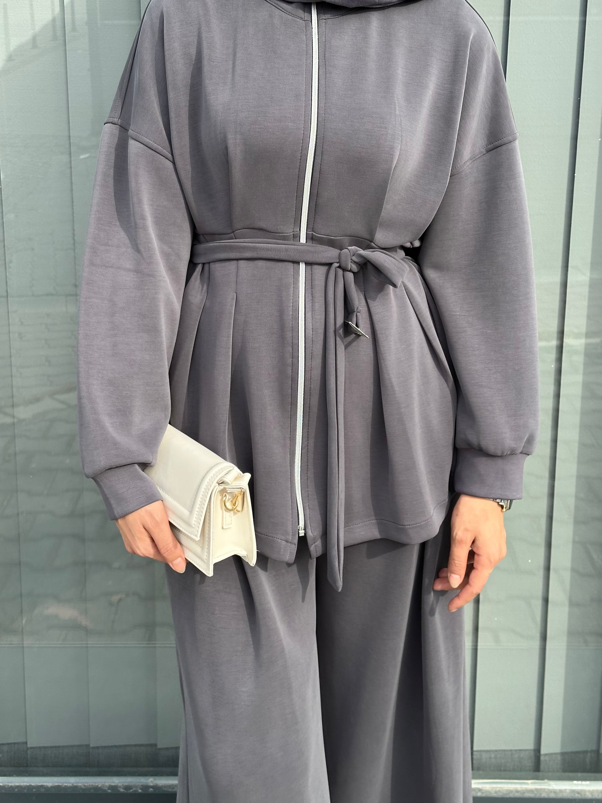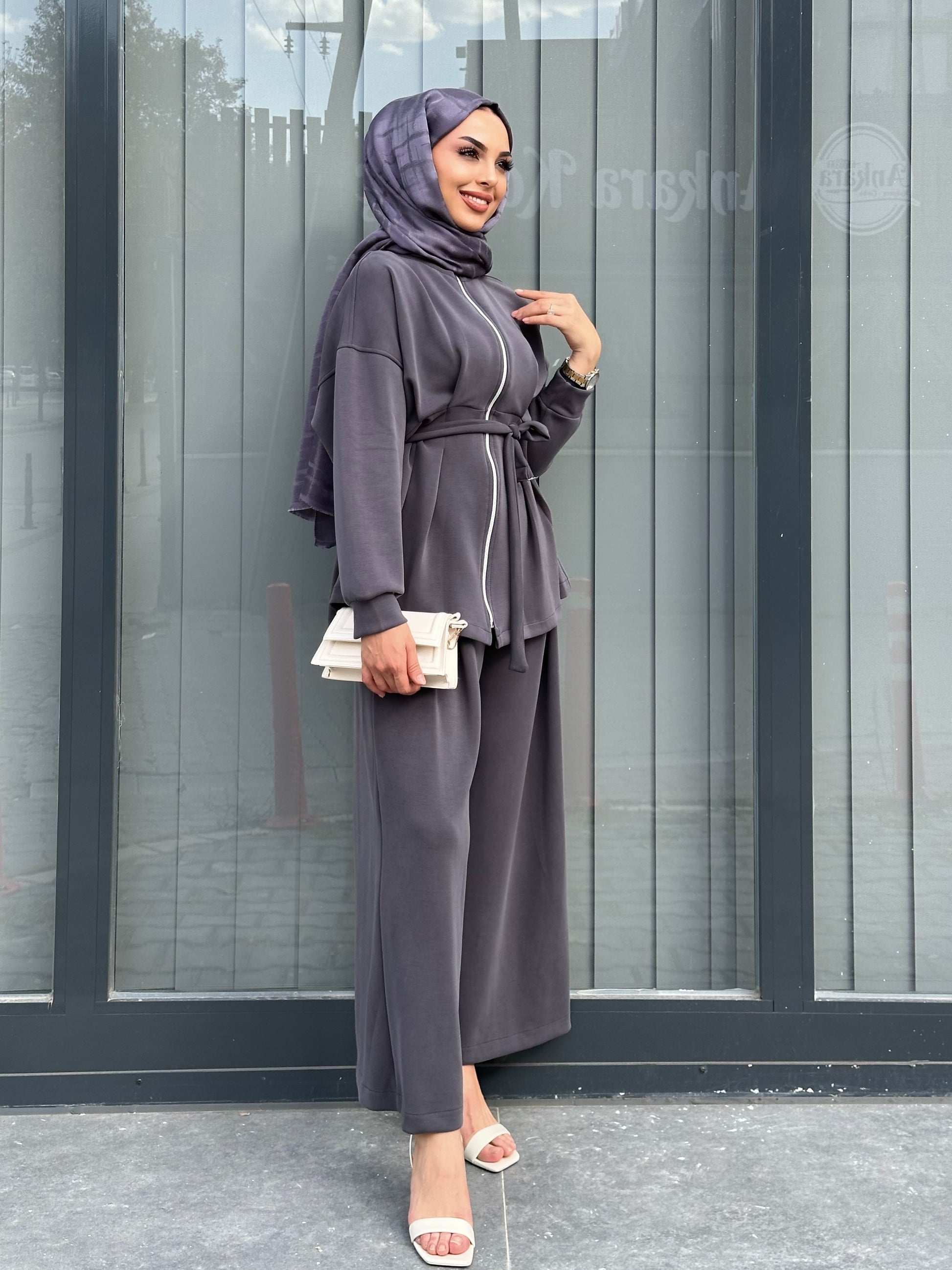ANTRASİT PİLİSELİ KEMER DETAYLI PANTOLON TAKIM