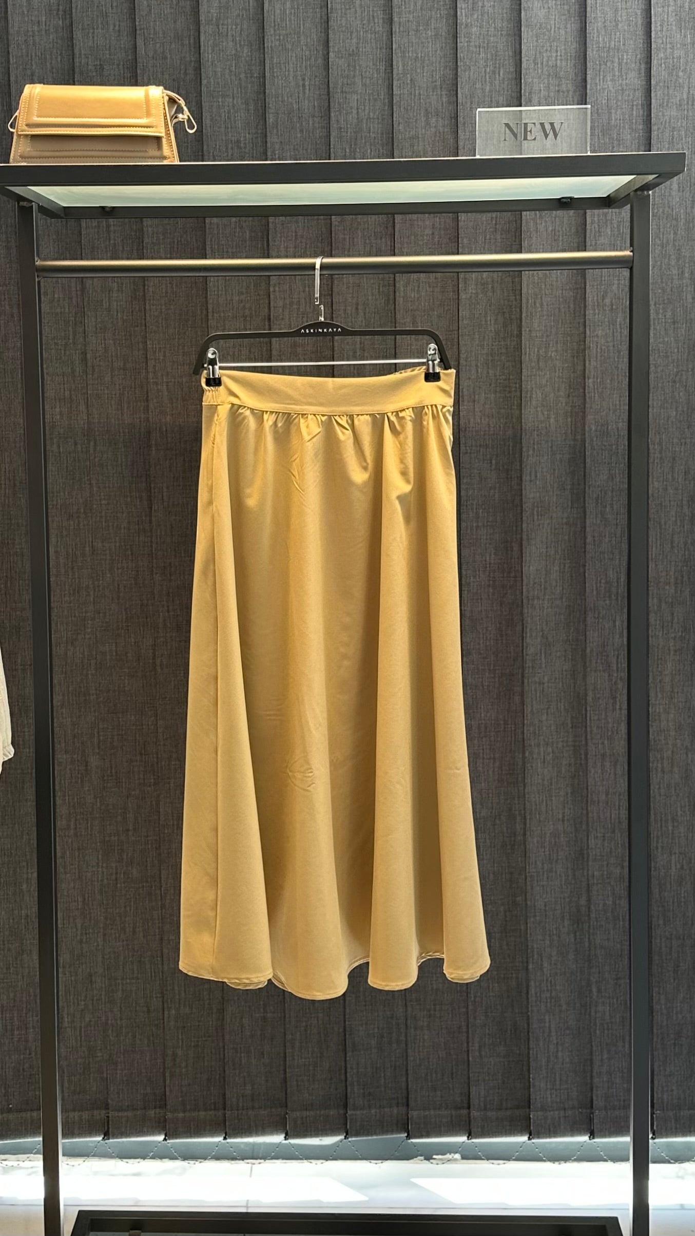 BEJ ARKASI LASTİK DETAYLI KLOŞ ETEK