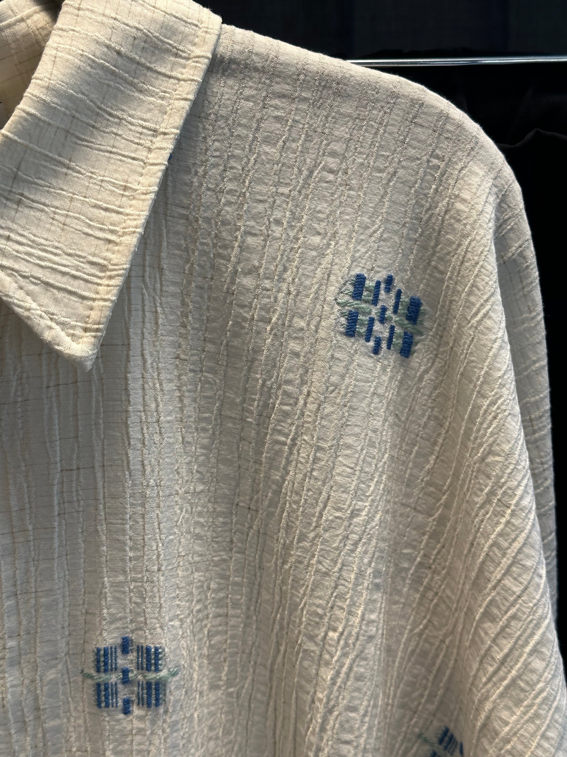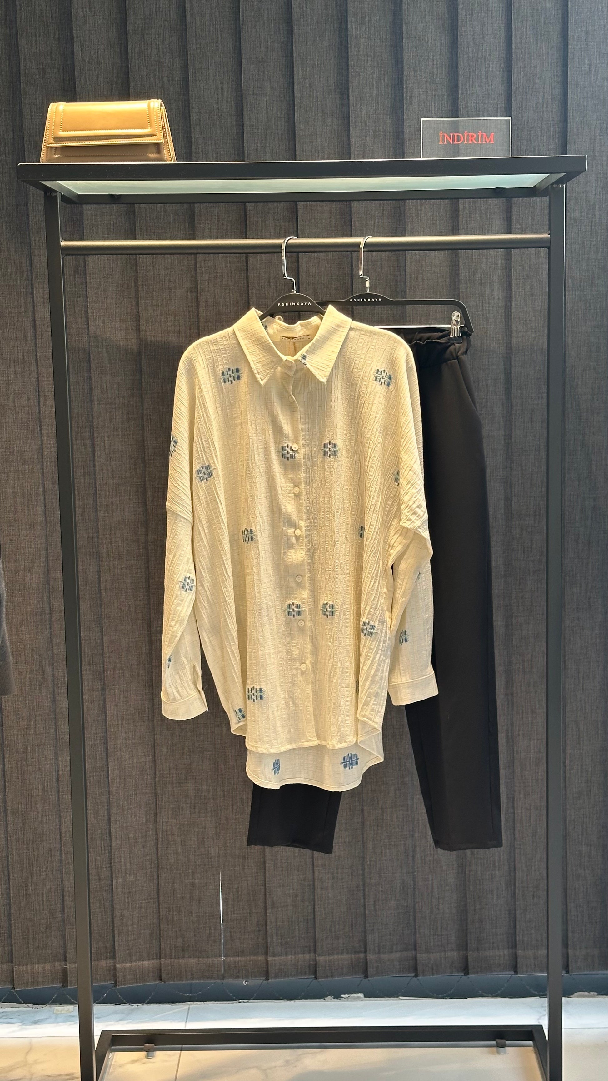 BEJ MAVİ RENKLİ SALAŞ KEMERLİ GÖMLEK