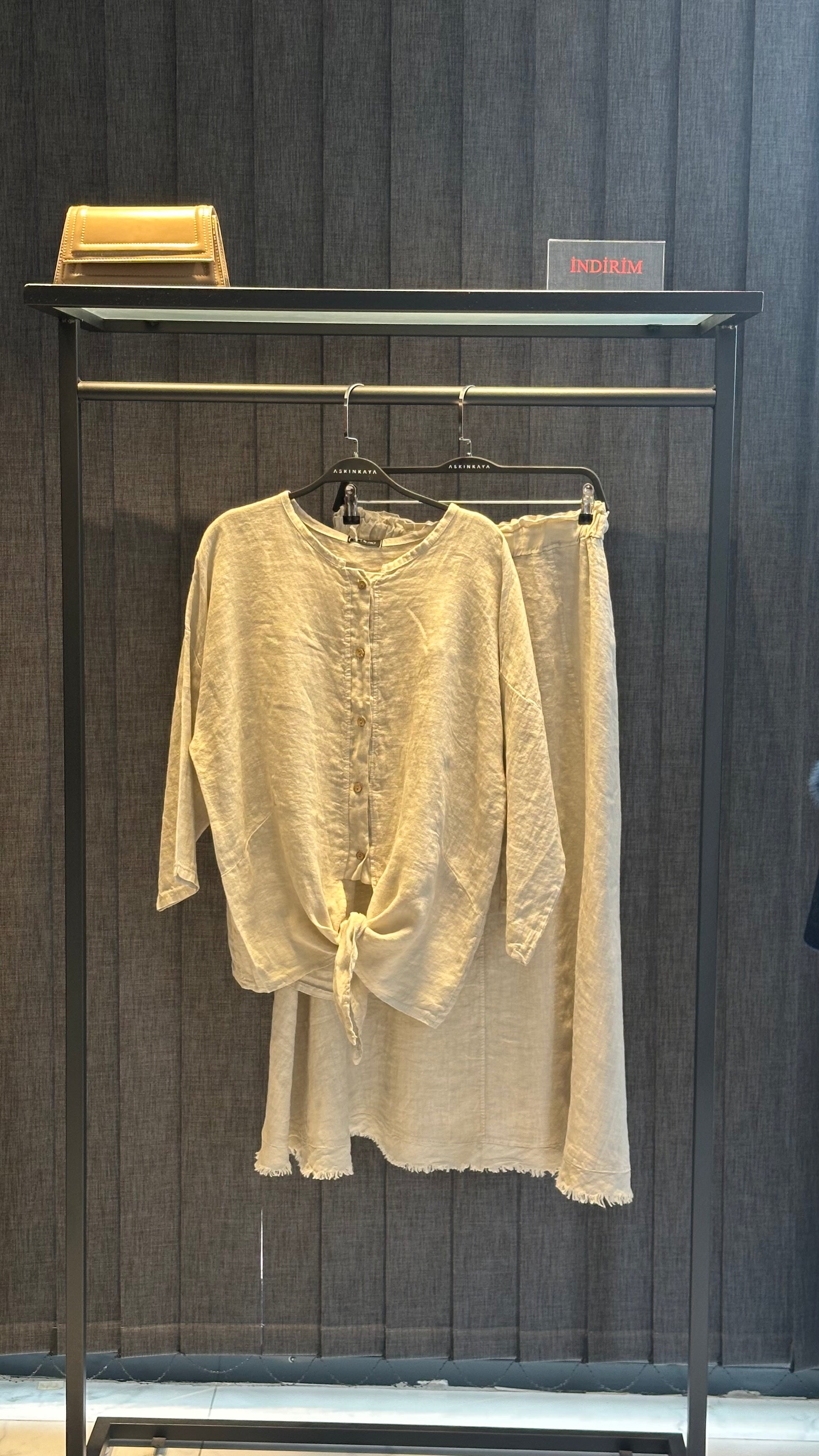 BEJ ÖNÜ BAĞLAMALI KETEN ETEK TAKIM