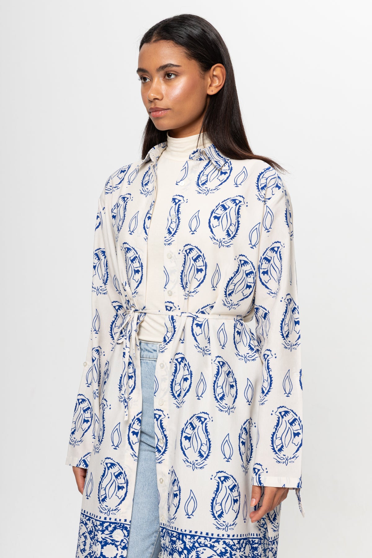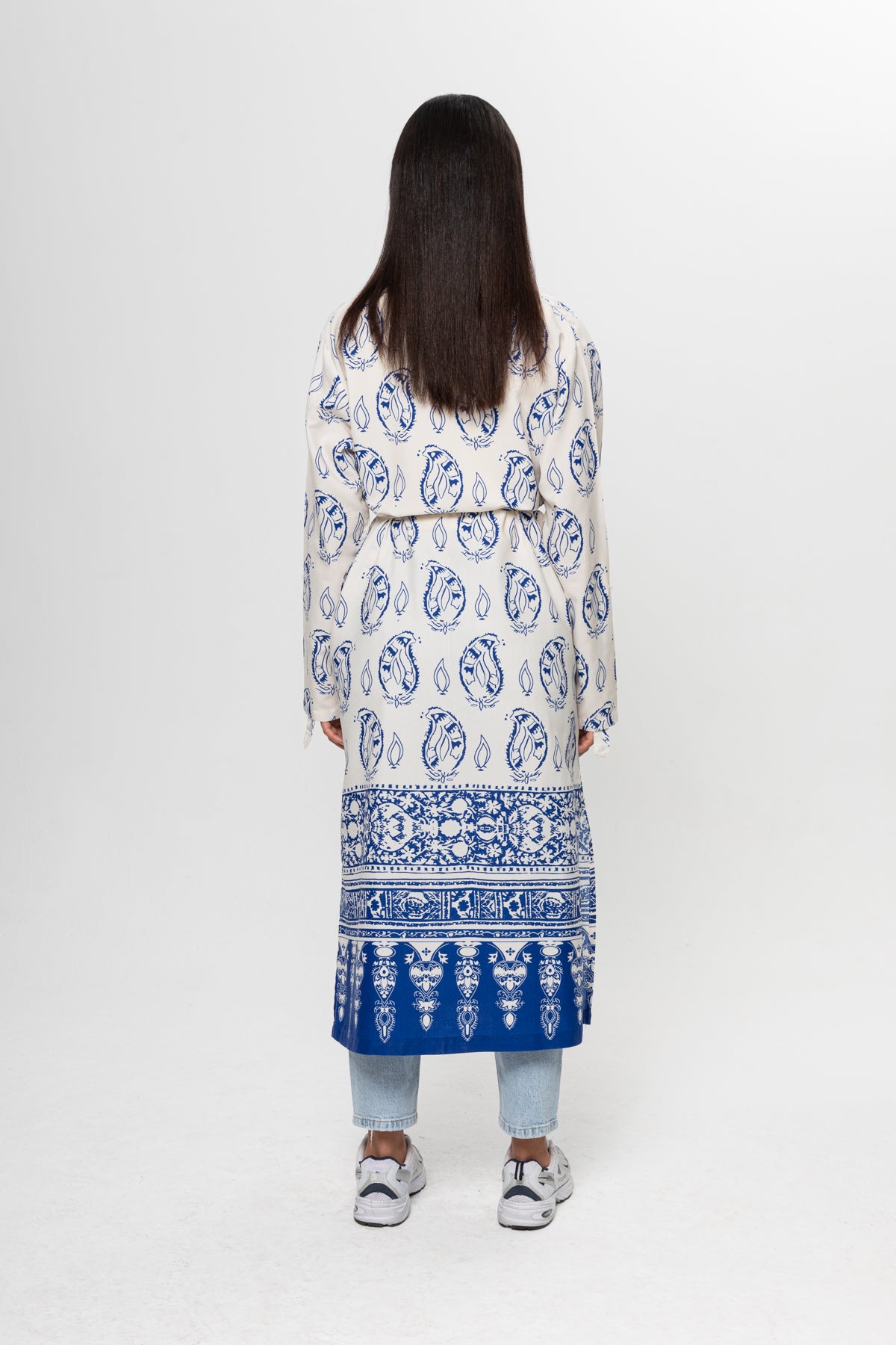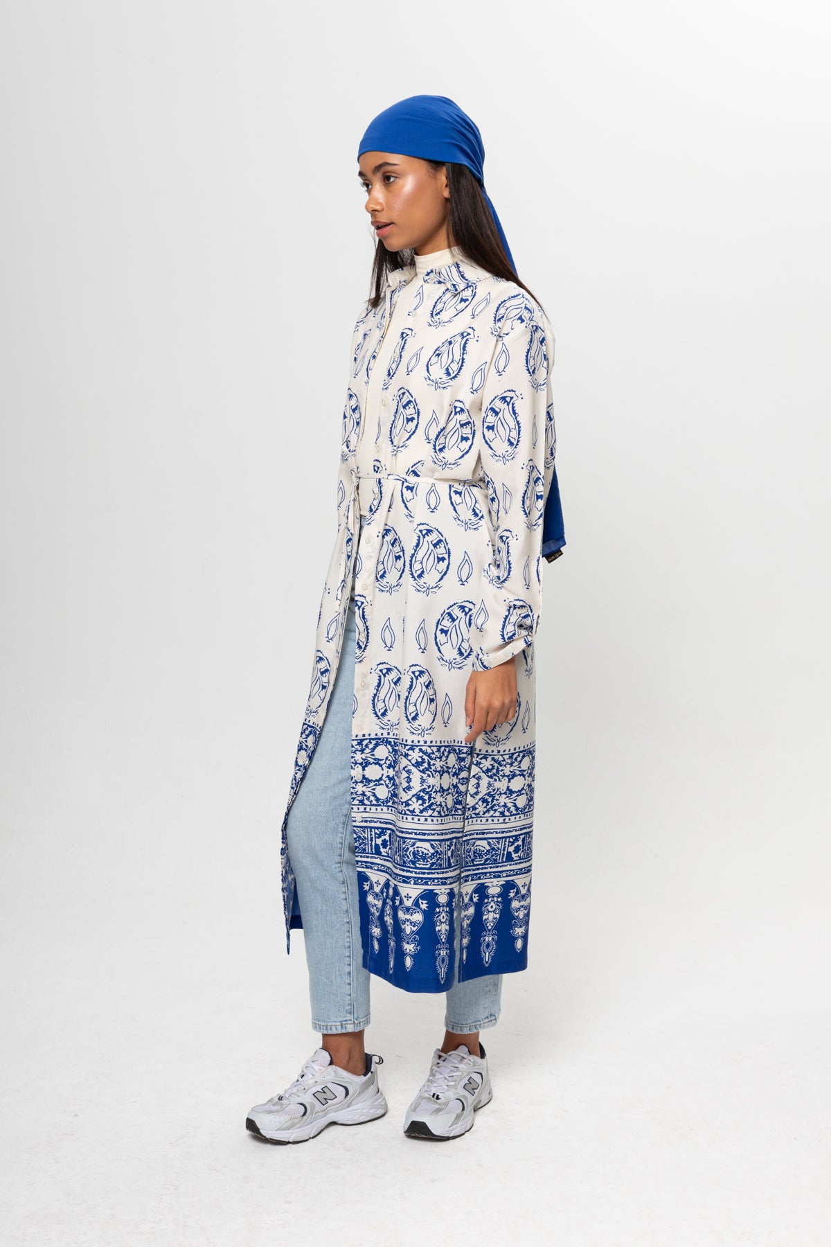 BEJ SAKS MAVİSİ DESENLİ GÖMLEK ELBİSE