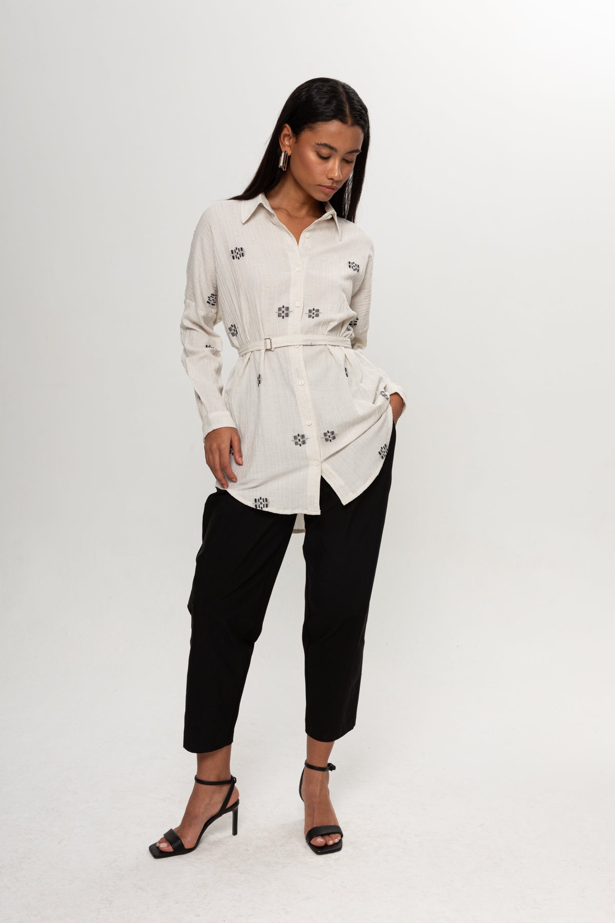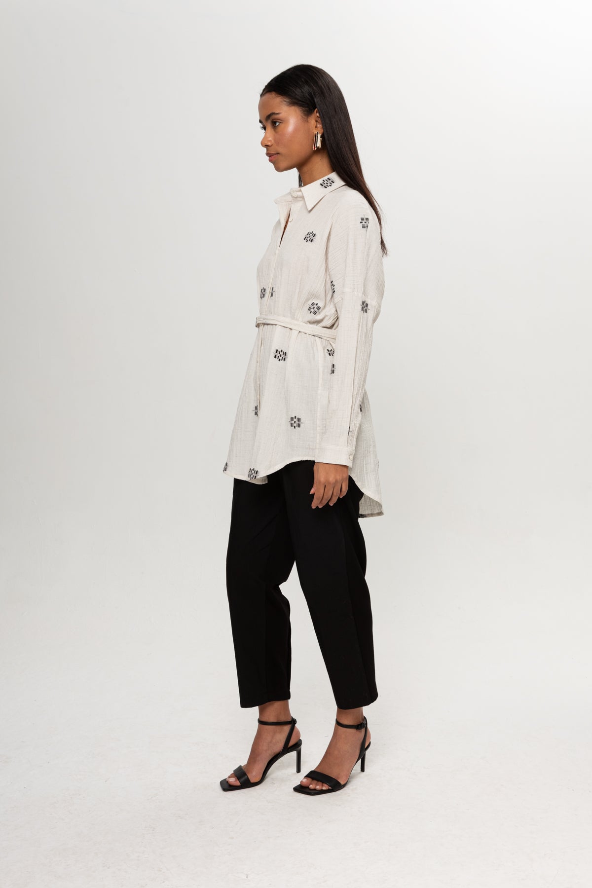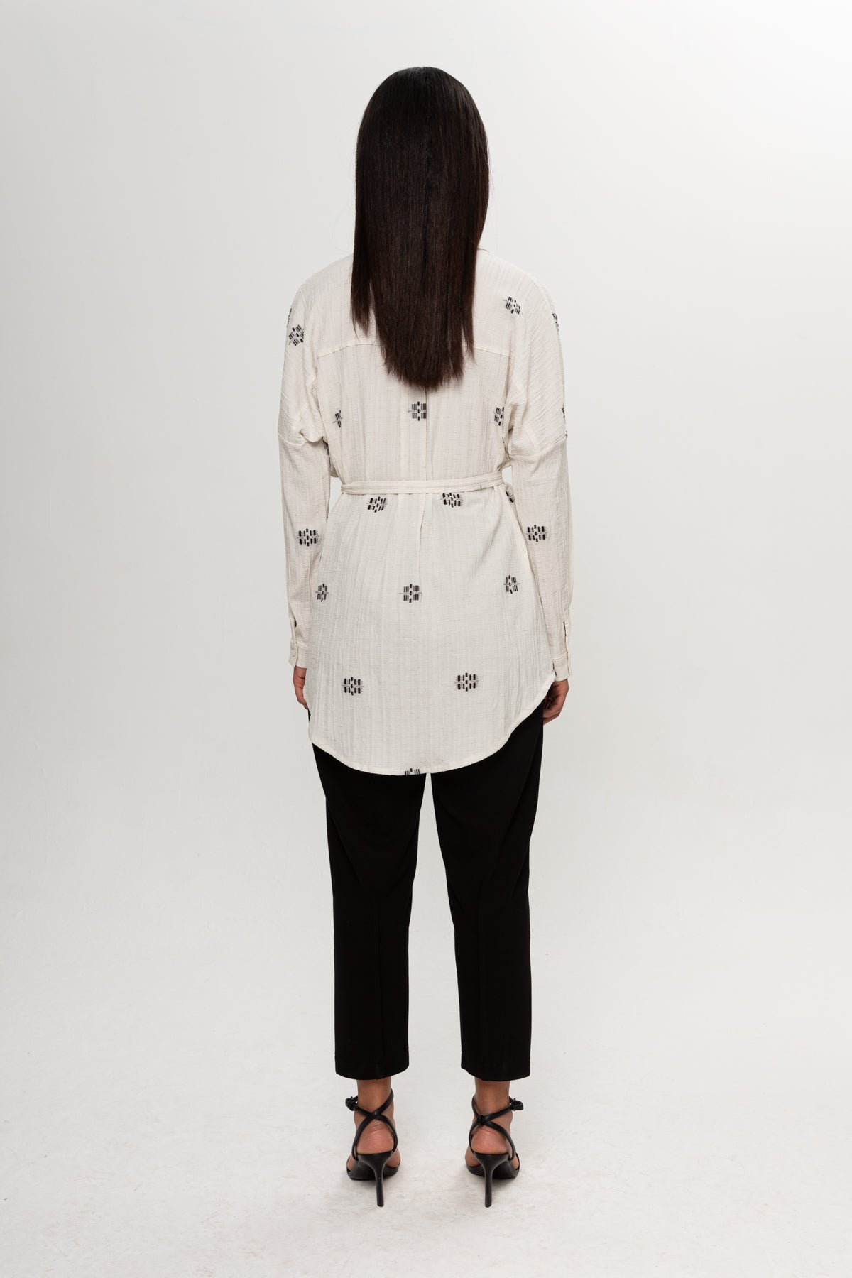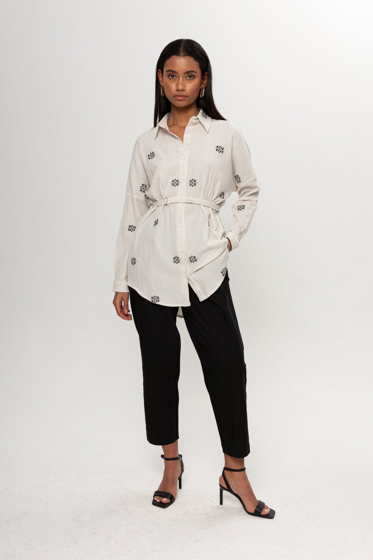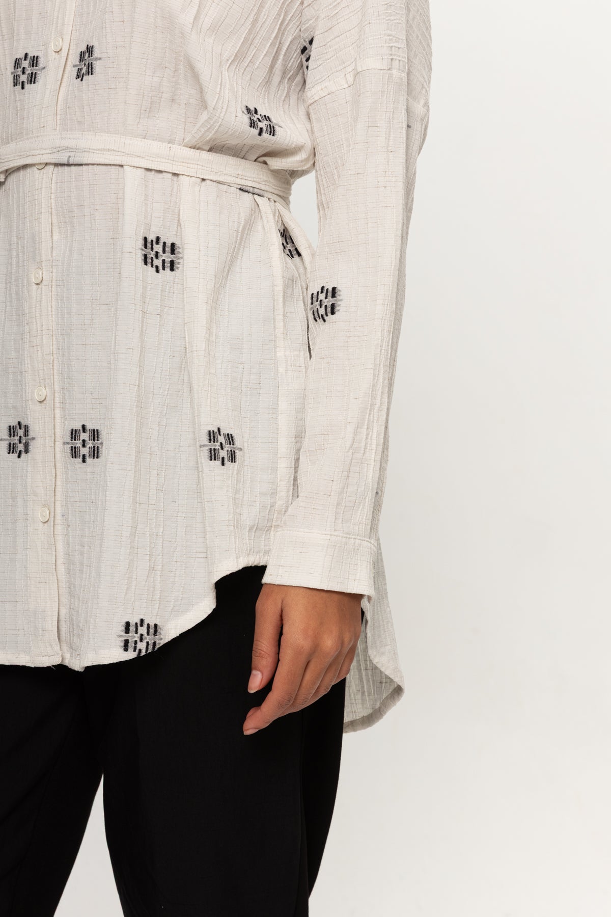 BEJ SİYAH RENKLİ SALAŞ KEMERLİ GÖMLEK