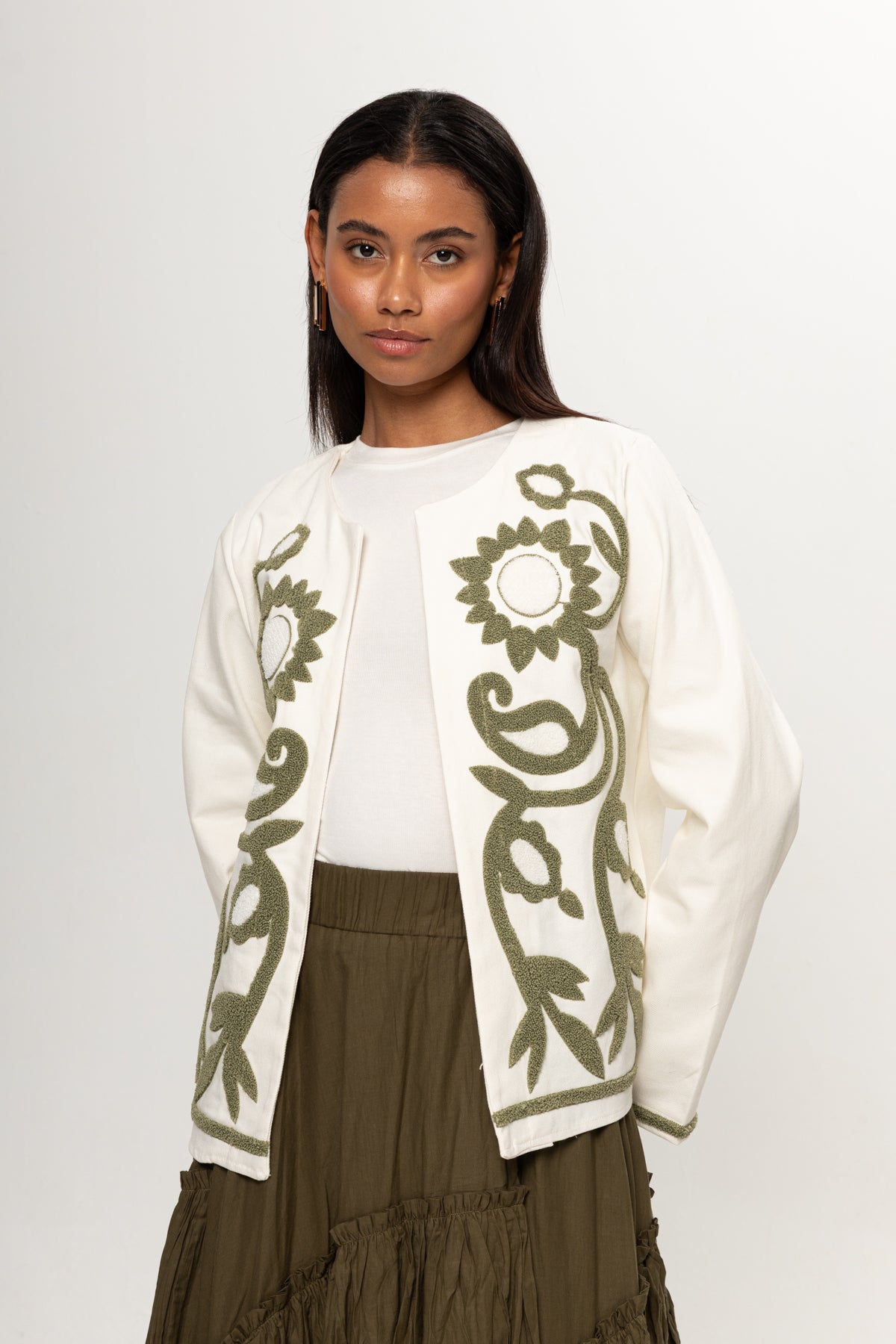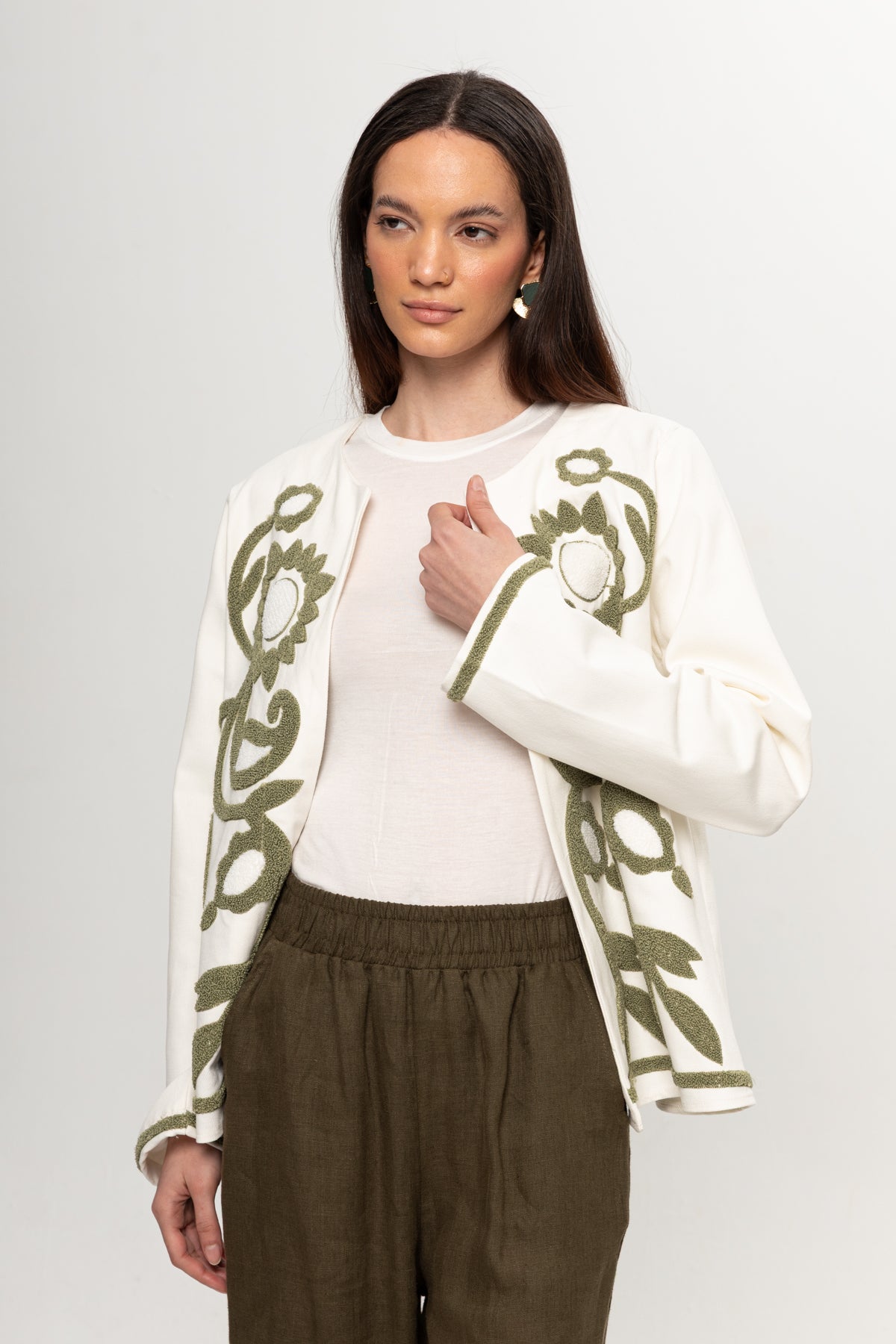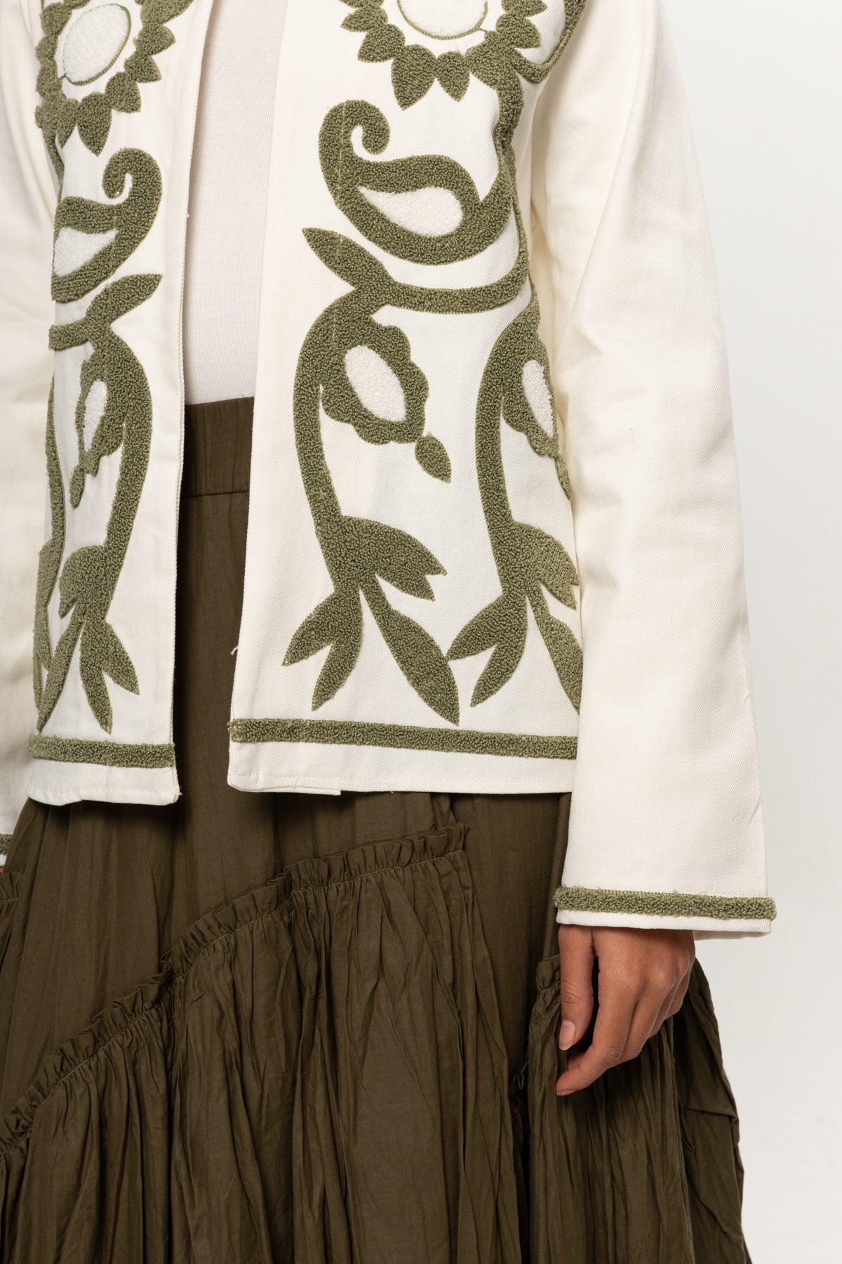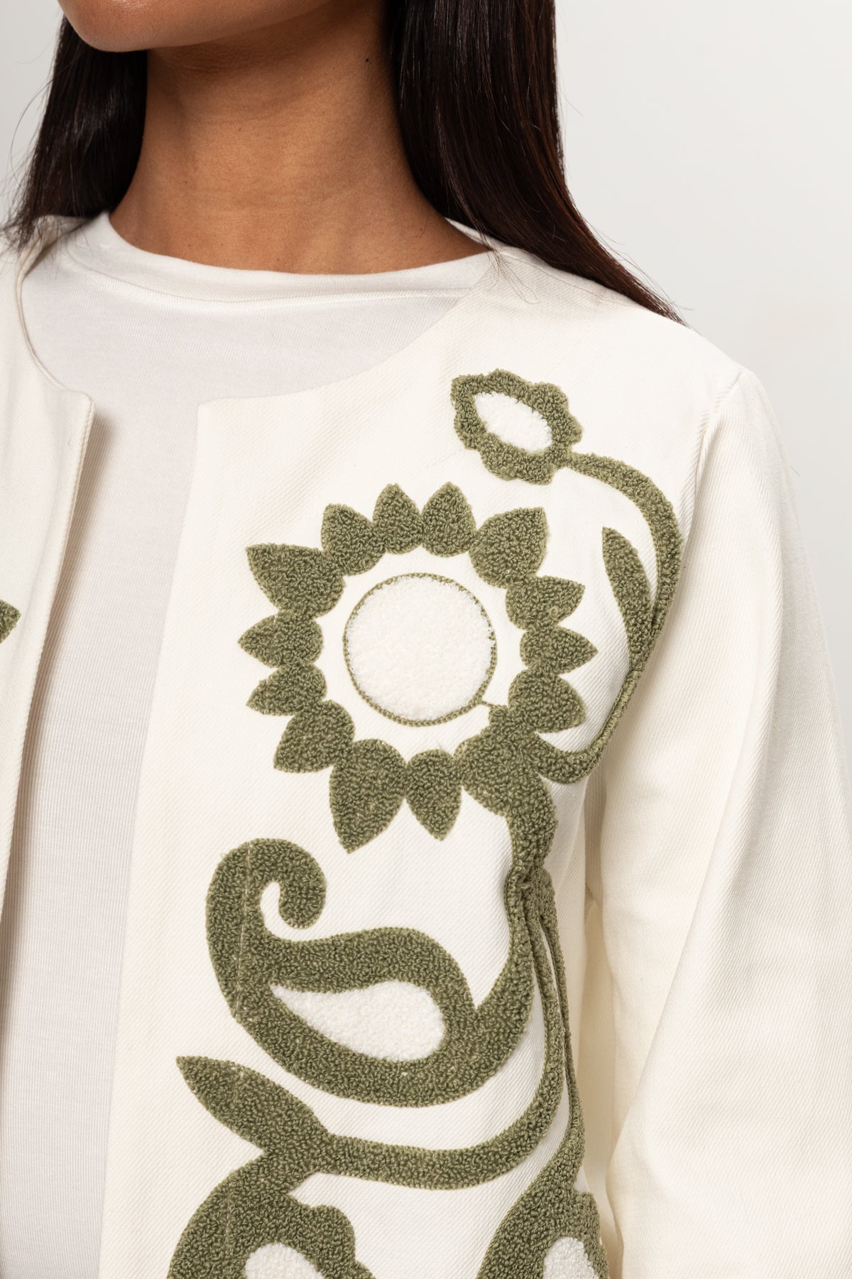 BEJ YEŞİL NAKIŞLI KİMONO