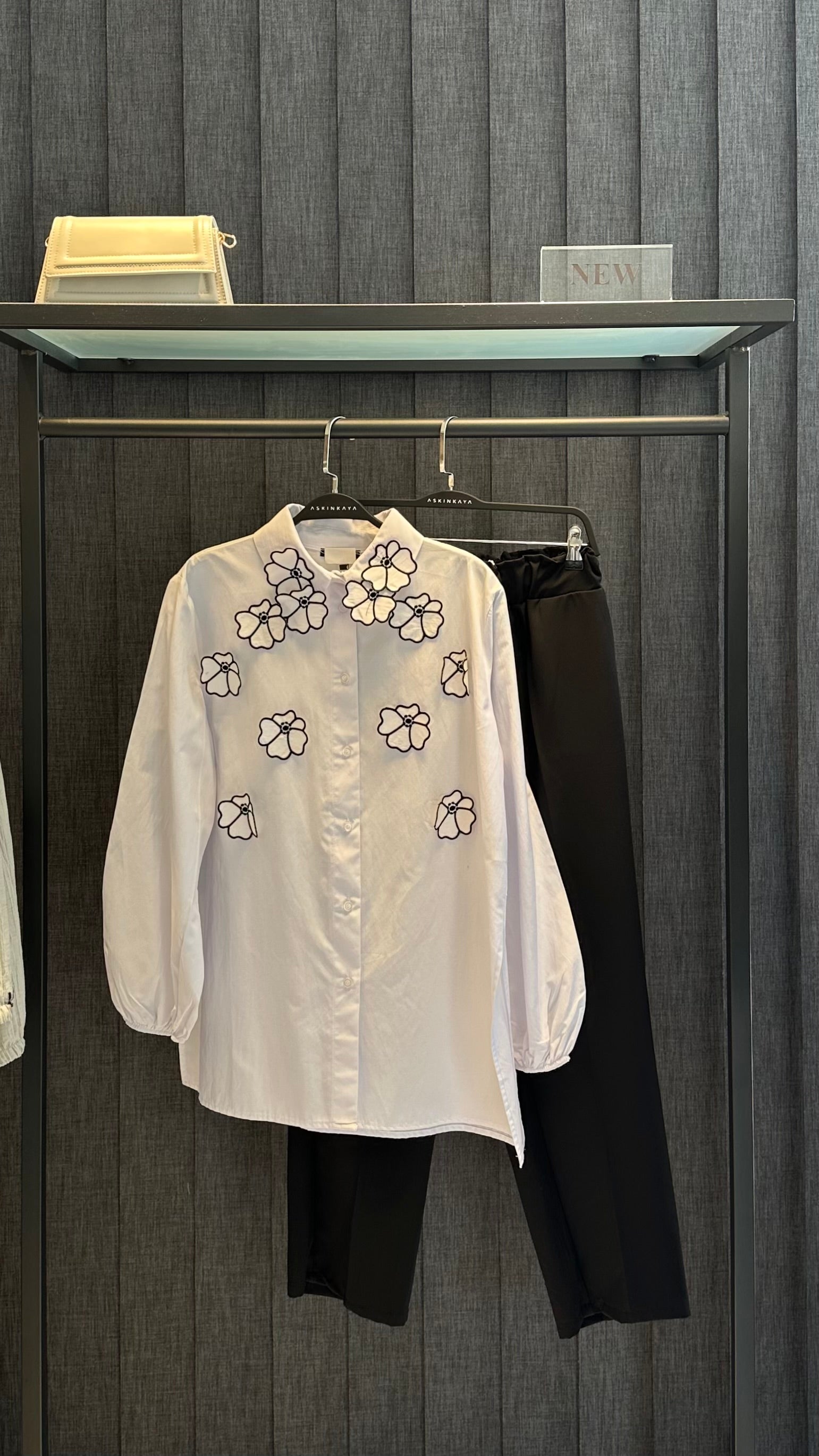 BEYAZ ÇİÇEK İŞLEMELİ GÖMLEK