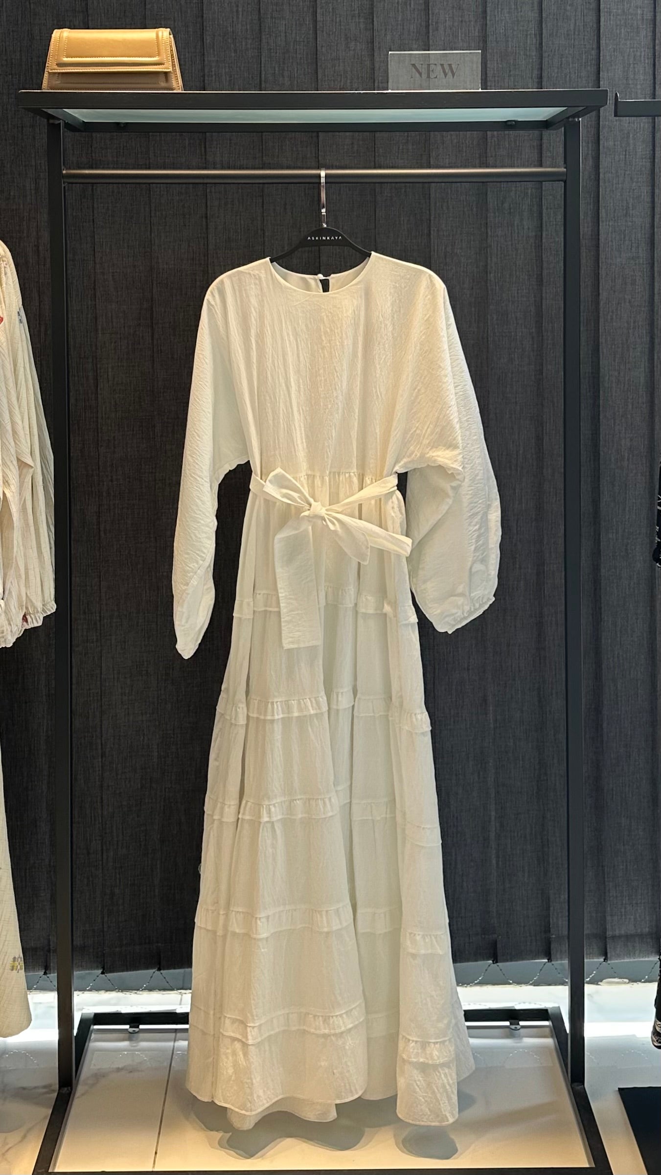 BEYAZ ETEĞİ FIRFIRLI ELBİSE