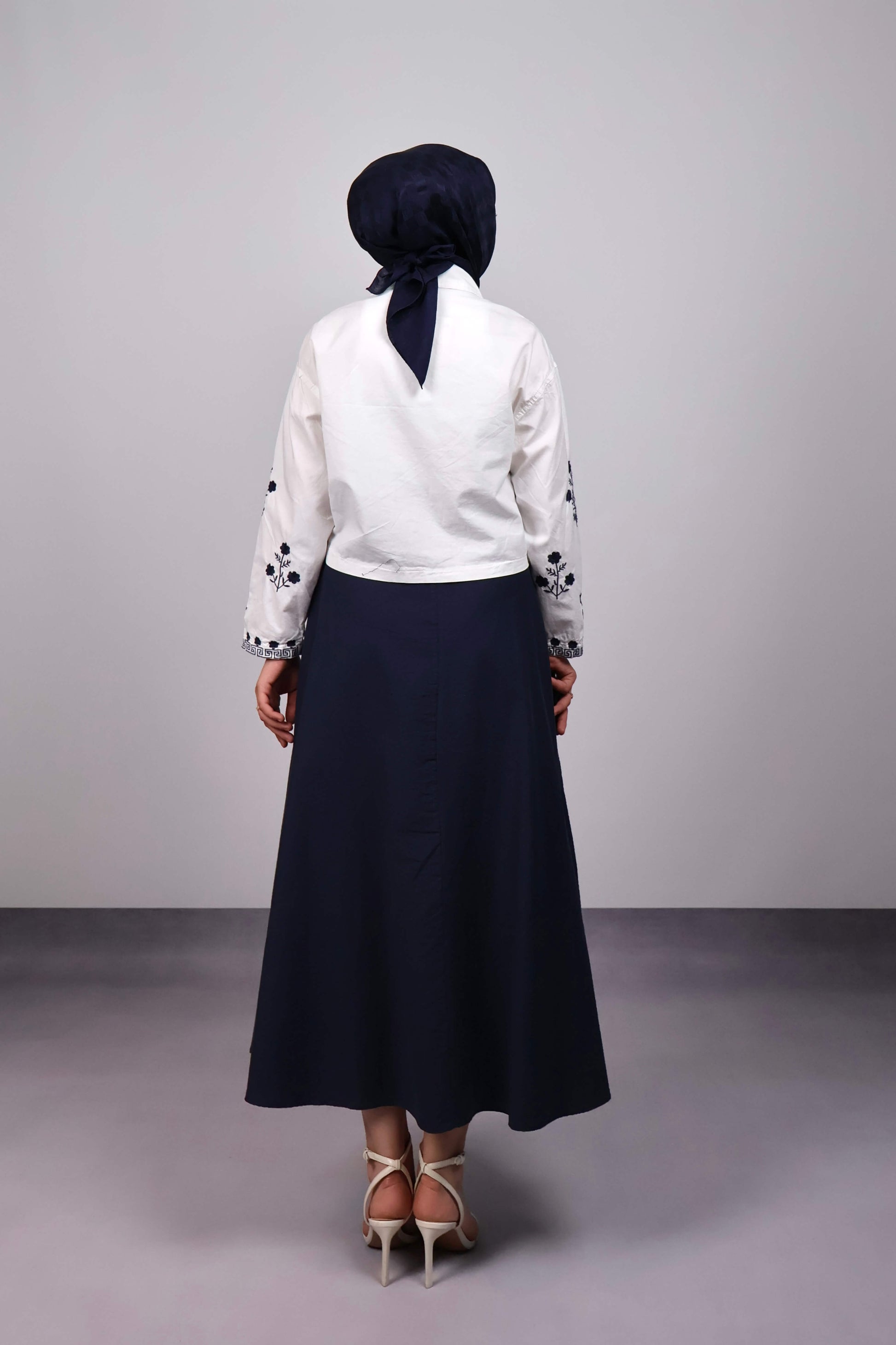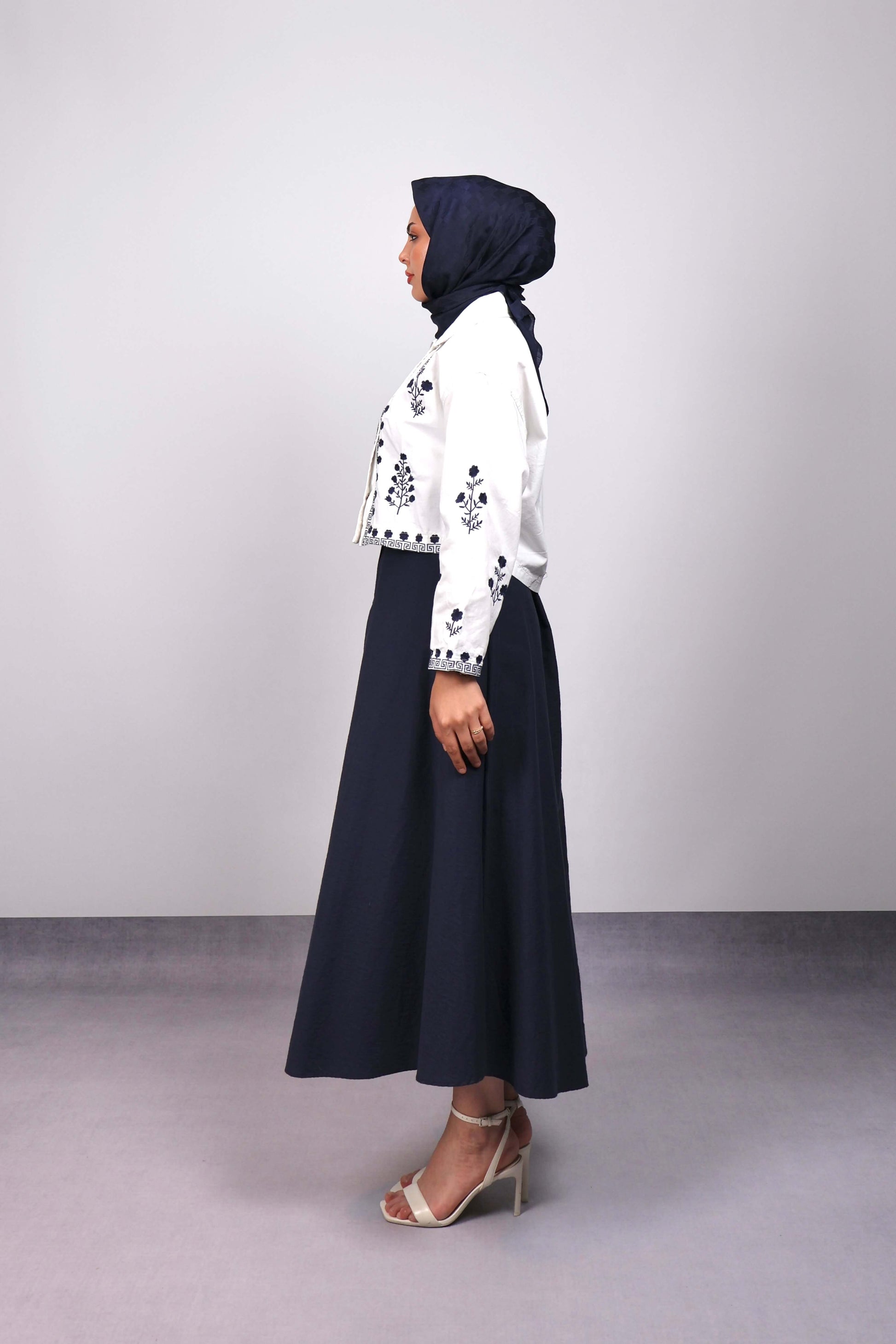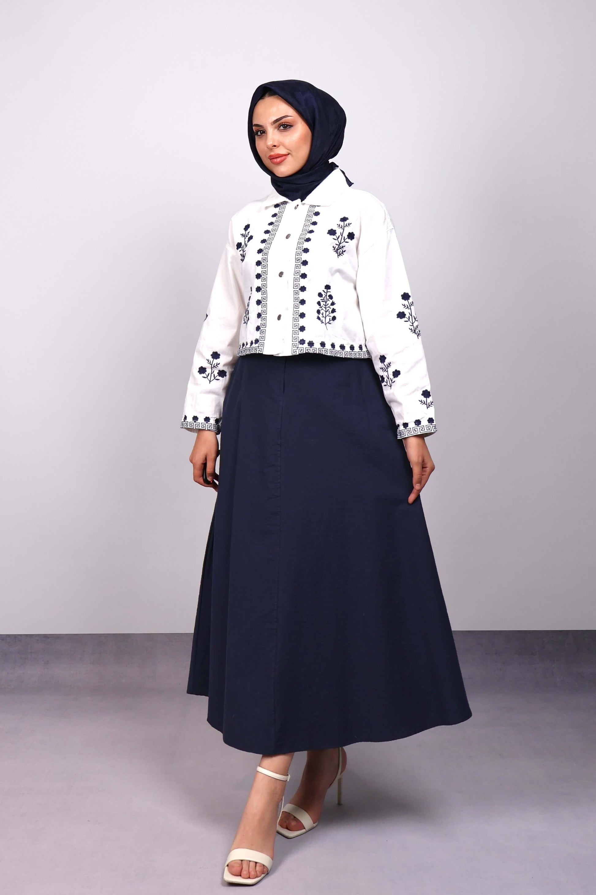 BEYAZ ÖN VE KOL NAKIŞ DETAYLI ÇITÇITLI KOT CEKET