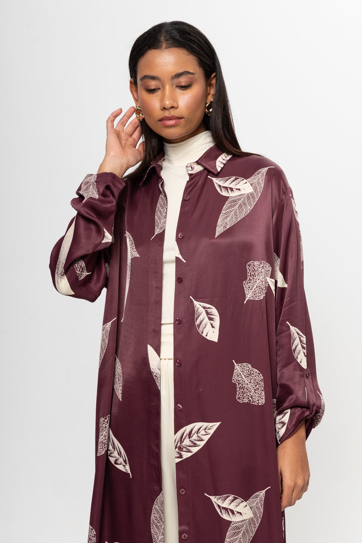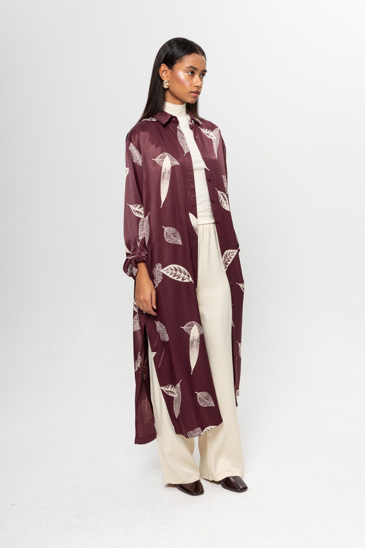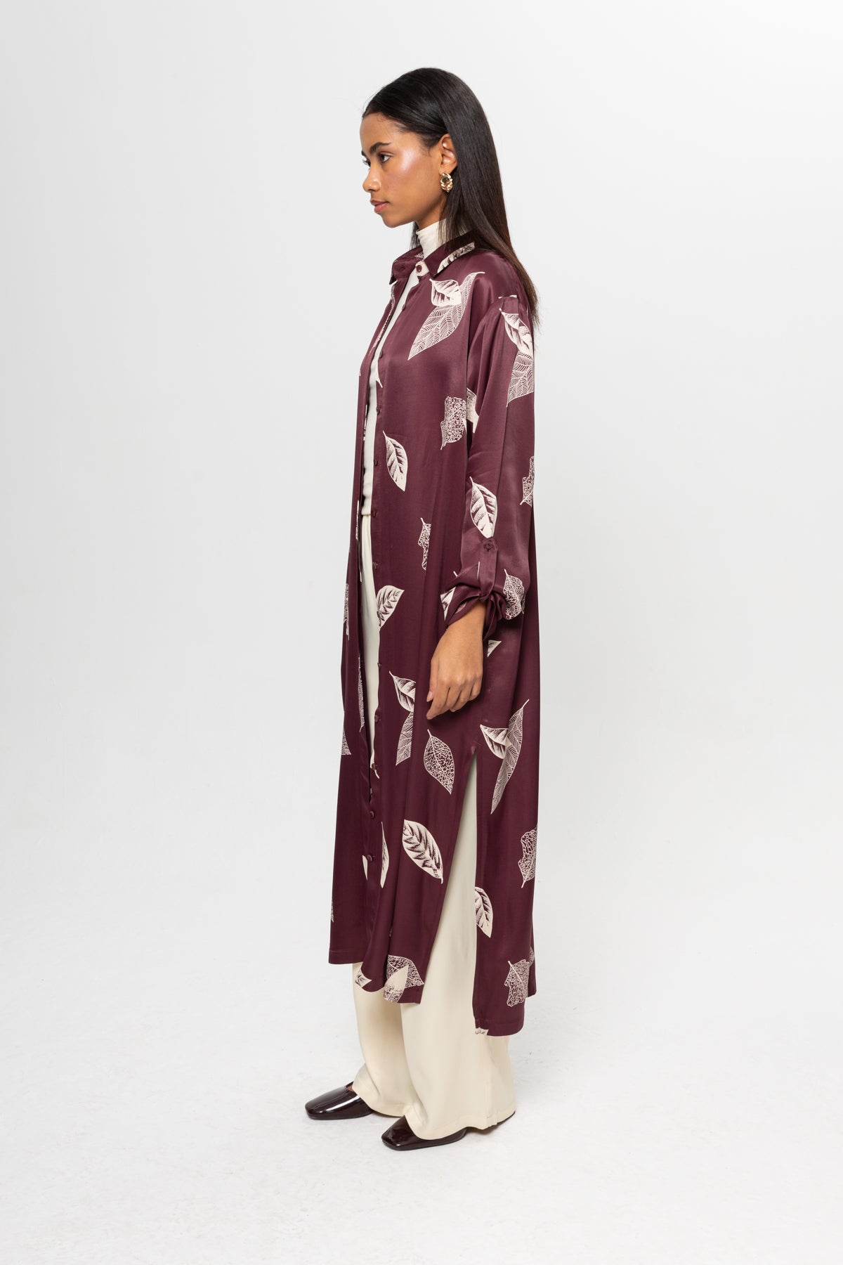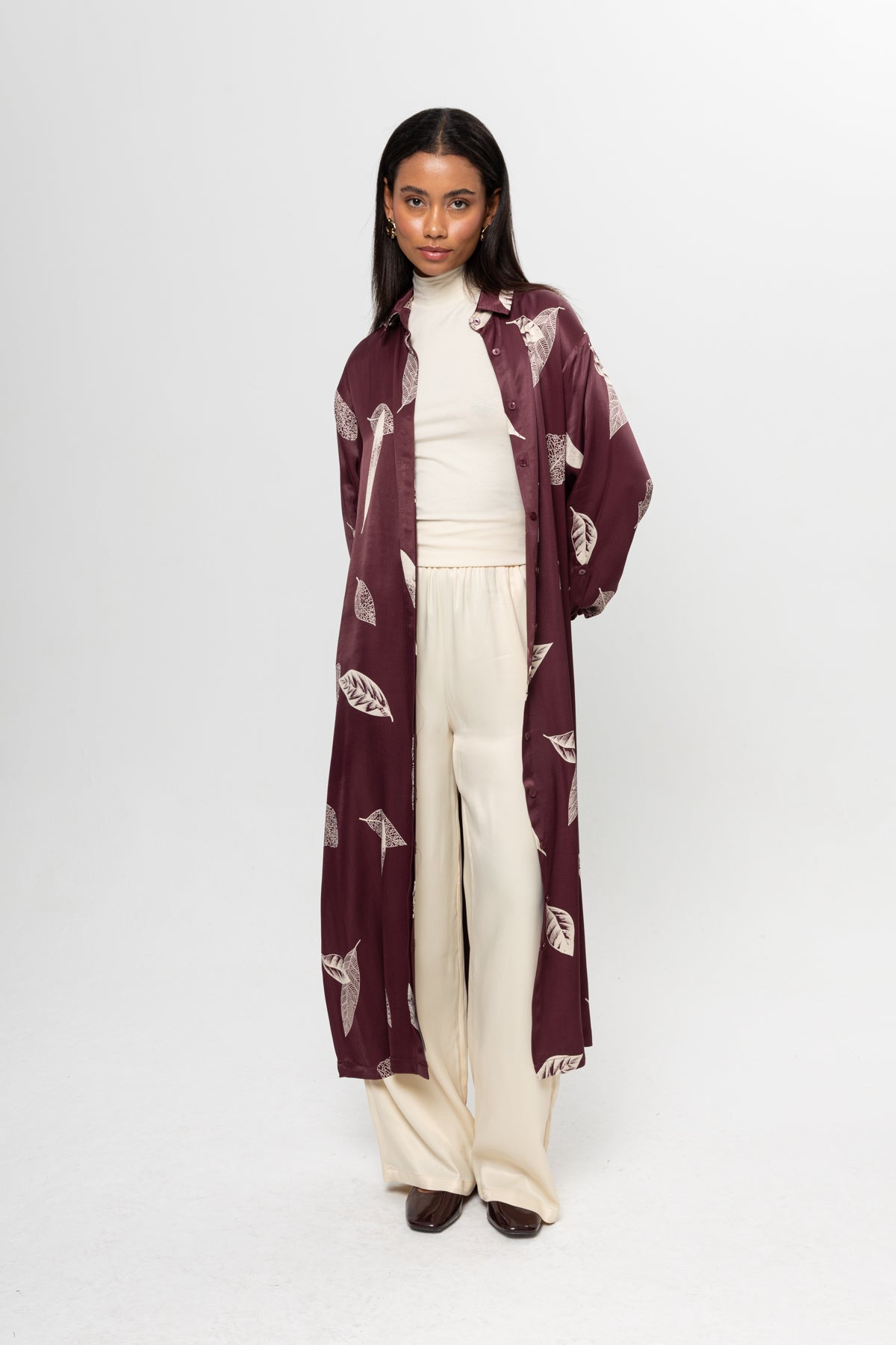 BORDO BEJLİ SATEN GÖMLEK ELBİSE