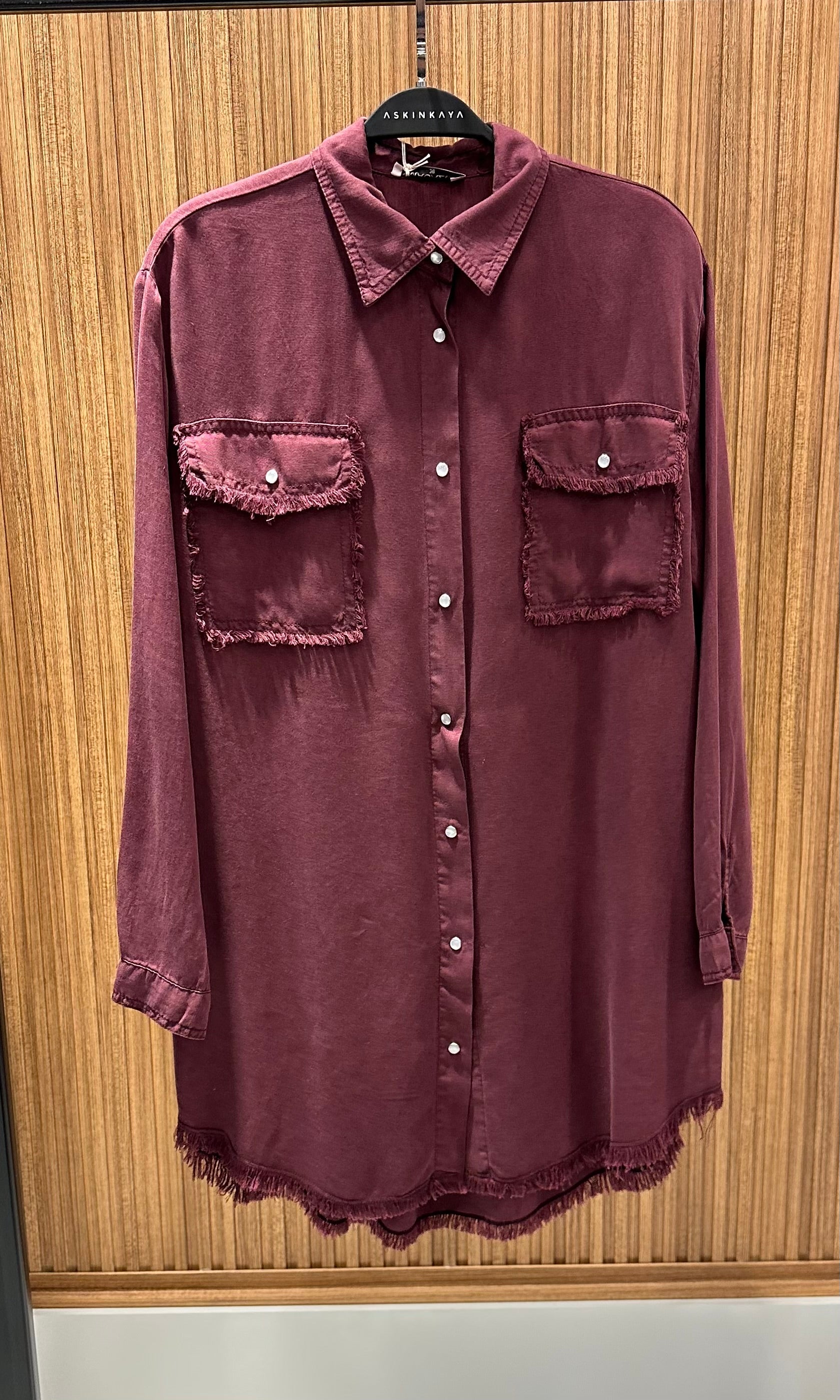 BORDO CEBİ PÜSKÜL DETAYLI TENSEL GÖMLEK