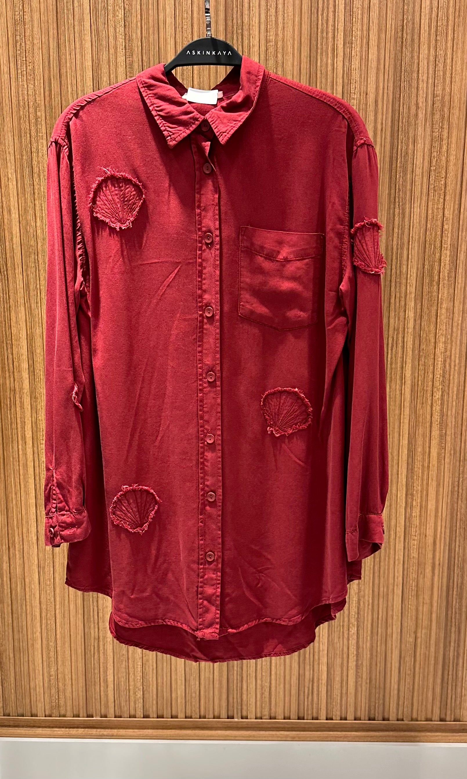 BORDO DENİZ KABUGU DETAYLI TENSEL GÖMLEK
