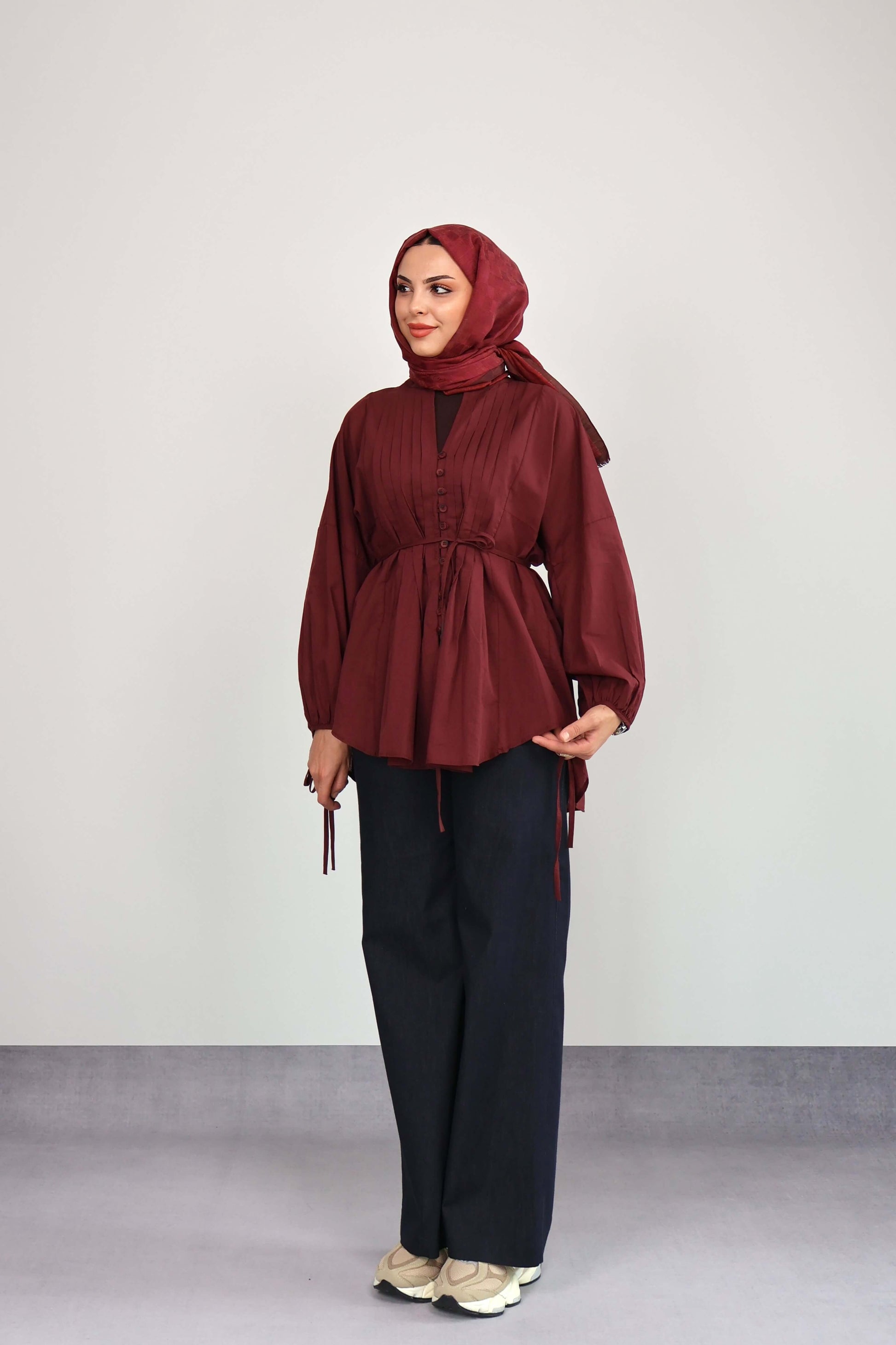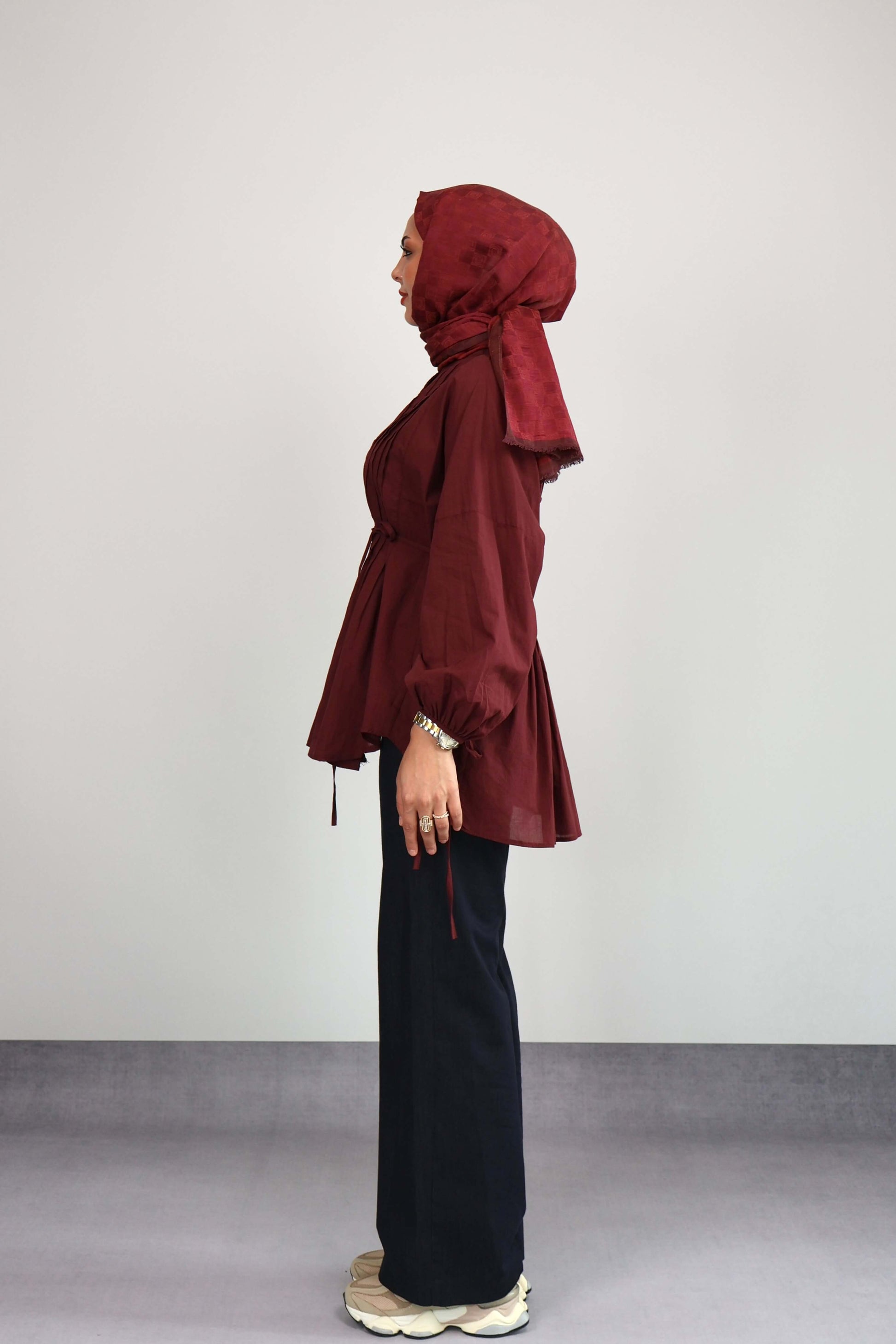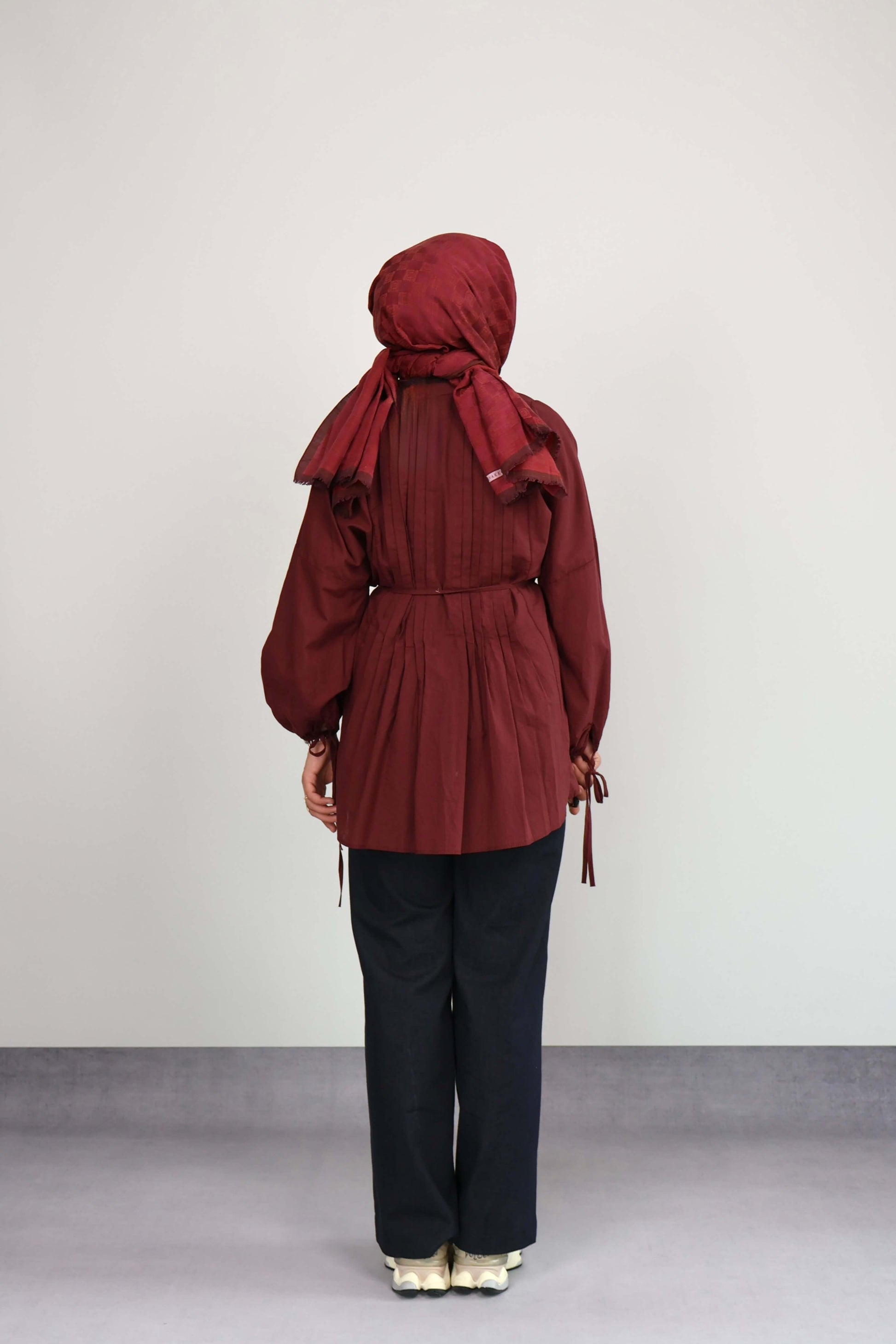 BORDO DİKİŞ DETAYLI BAĞLAMALI GÖMLEK