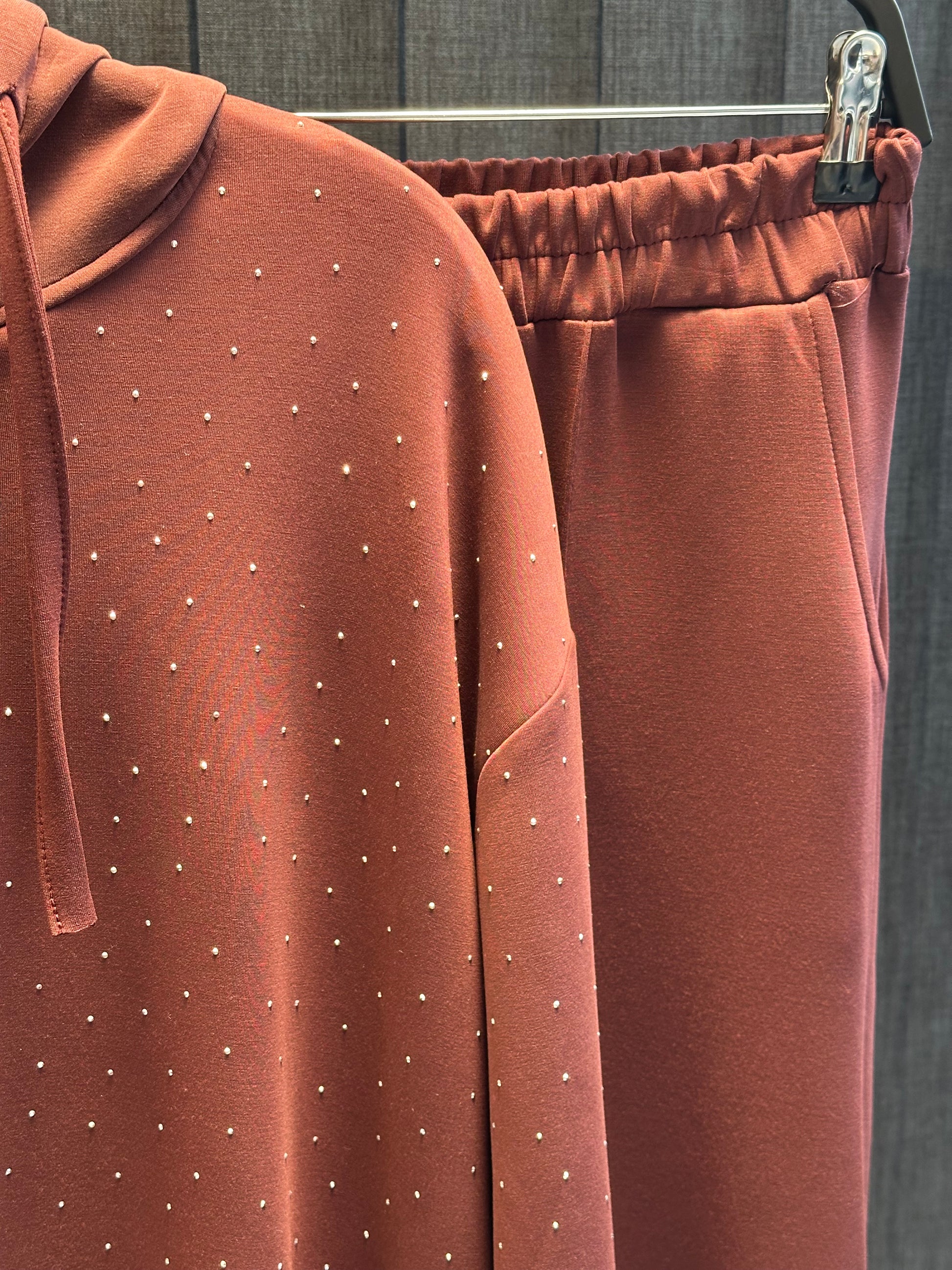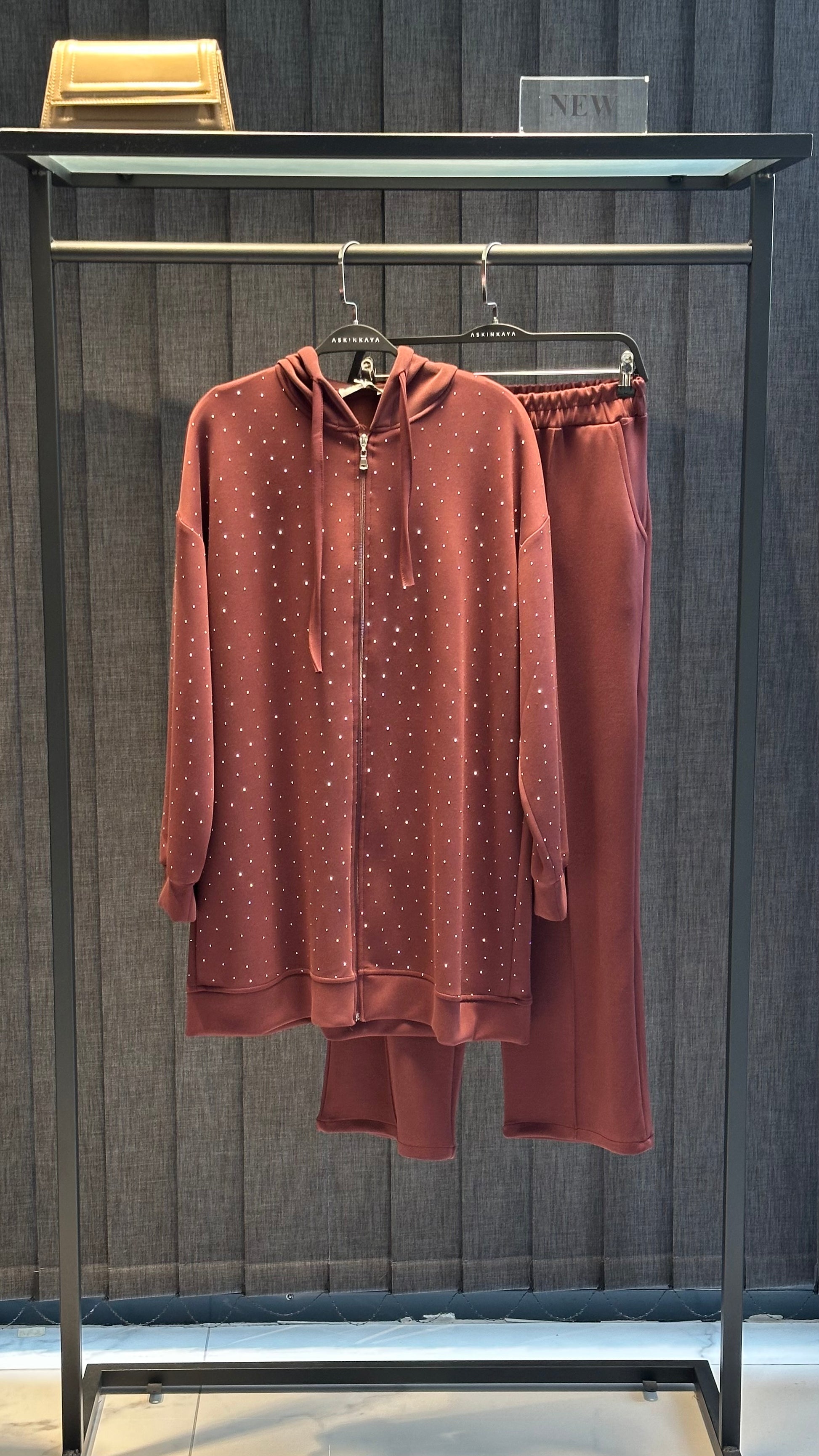 BORDO ÖNÜ TAŞLI FERMUAR DETAYLI PANTOLON TAKIM