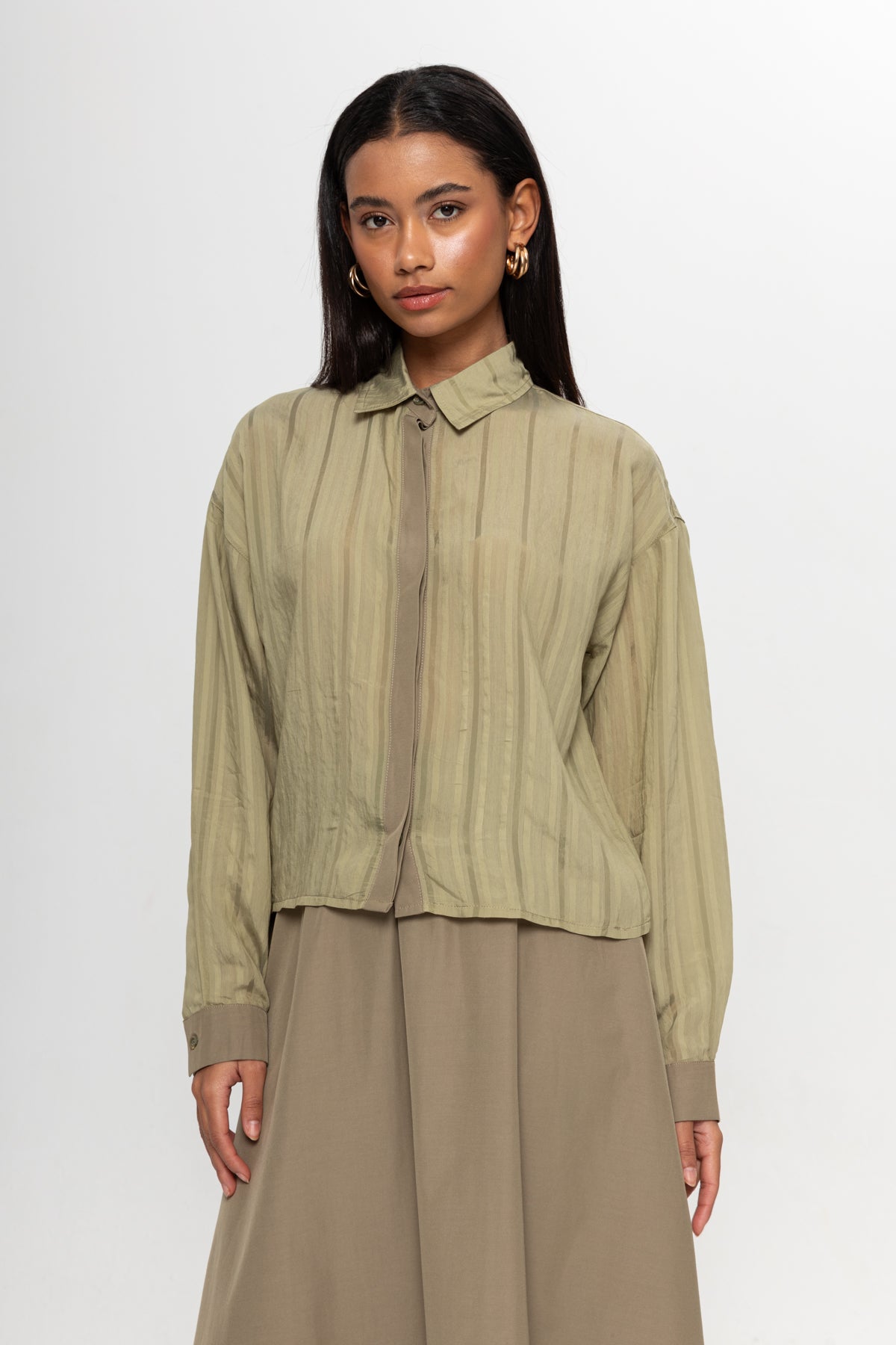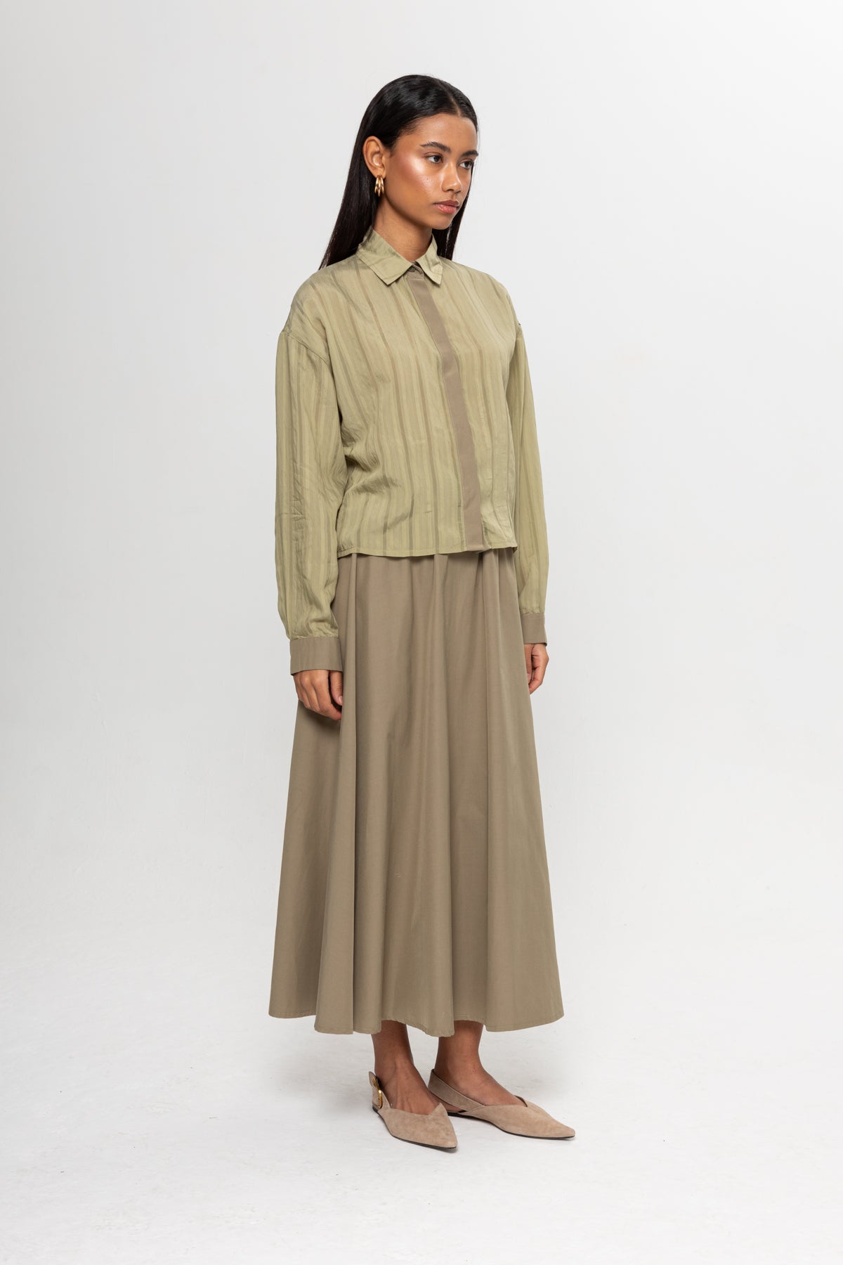 ÇAĞLA YEŞİLİ ÇİZGİLİ GİZLİ PATLI ETEKLİ TAKIM