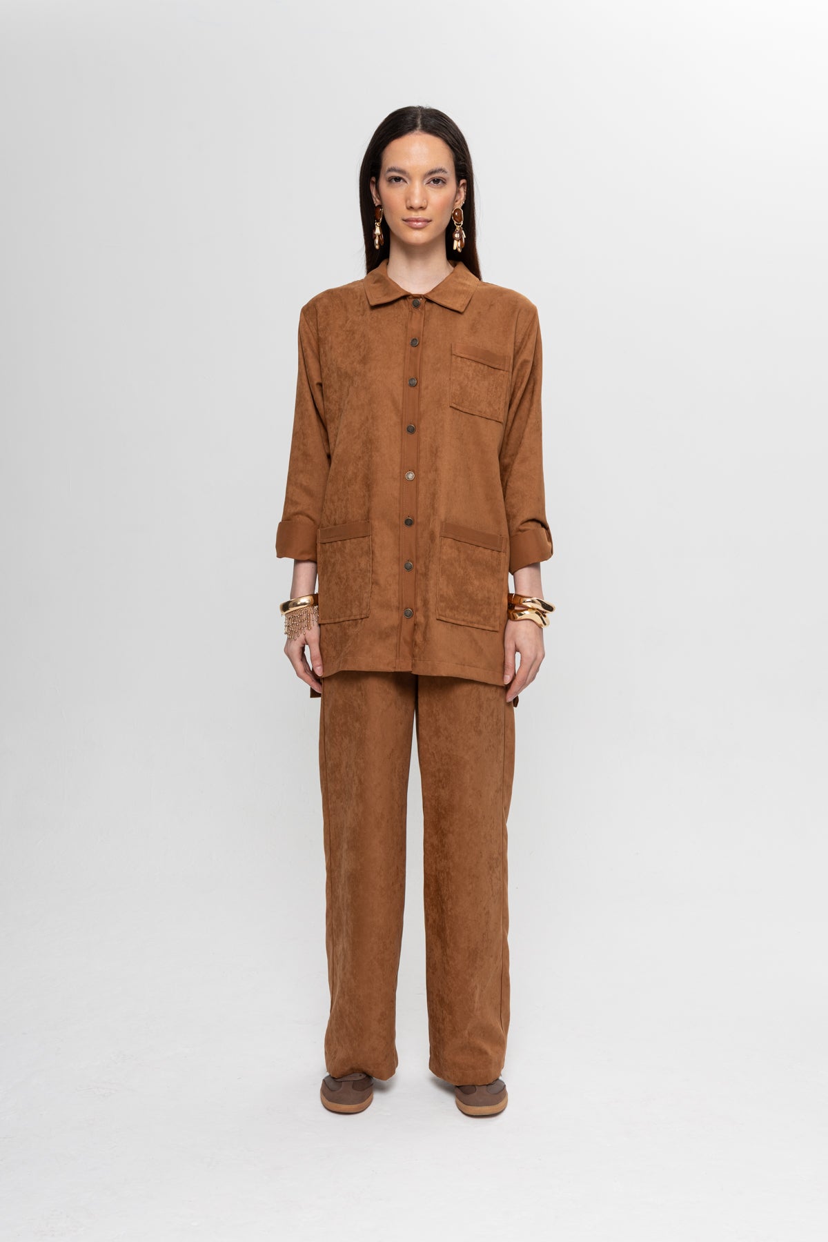 CAMEL SÜET ÜÇ CEPLİ PANTOLON TAKIM