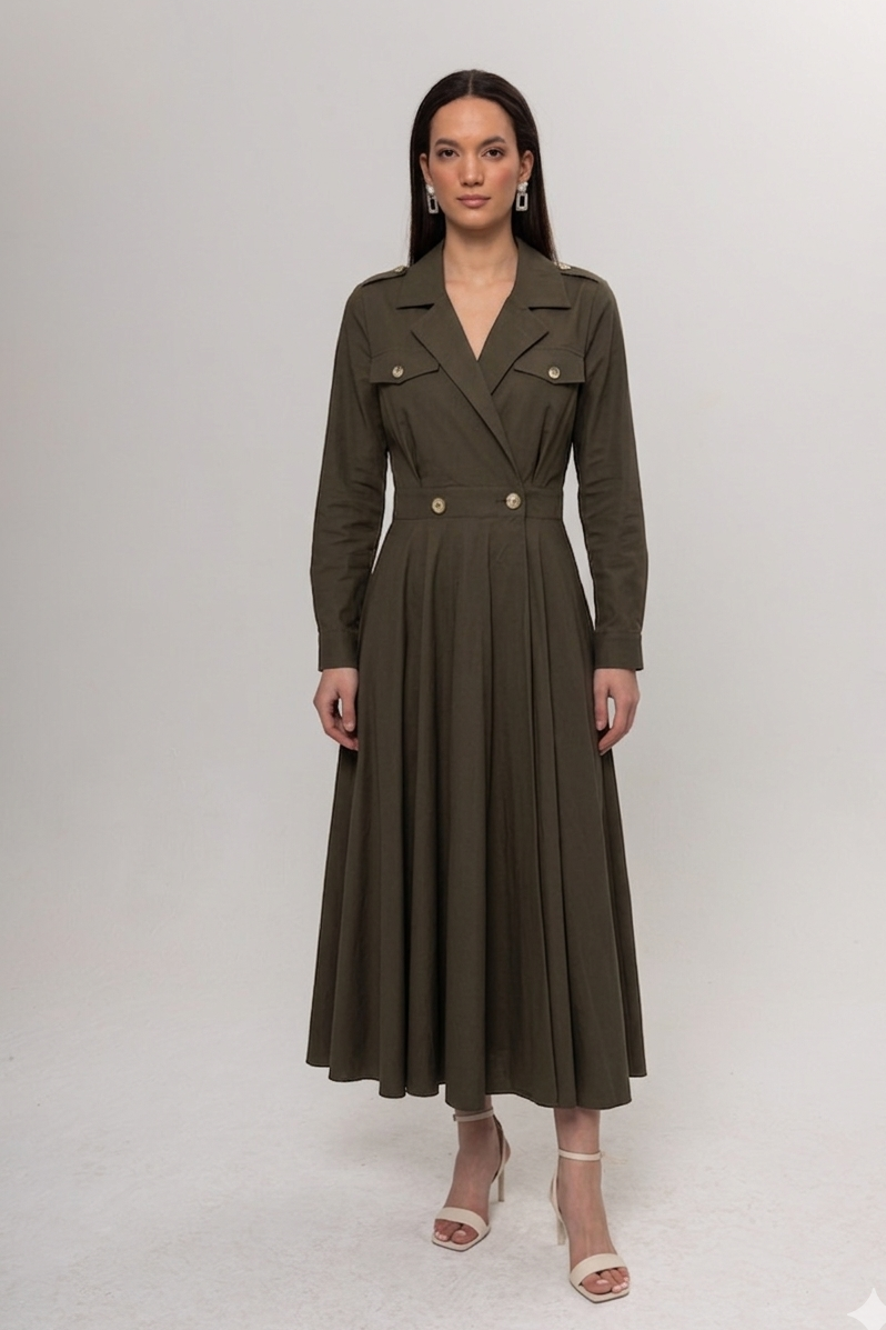 HAKİ APOLET DETAY TRENÇ ELBİSE