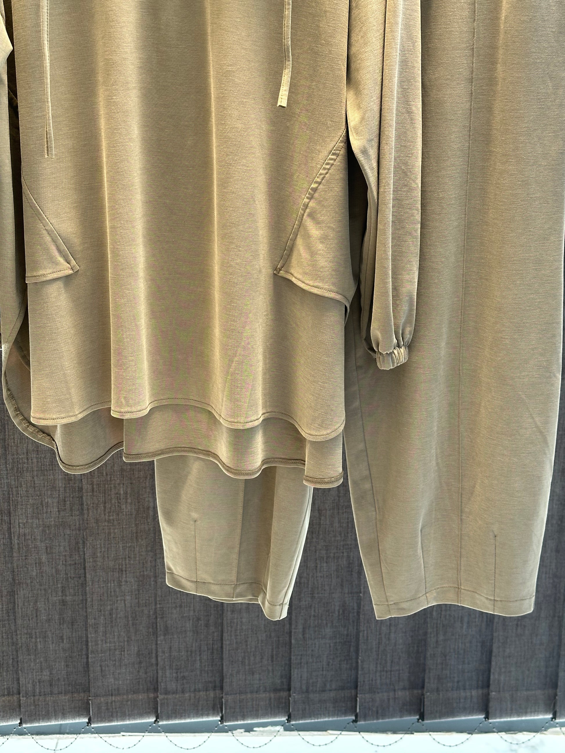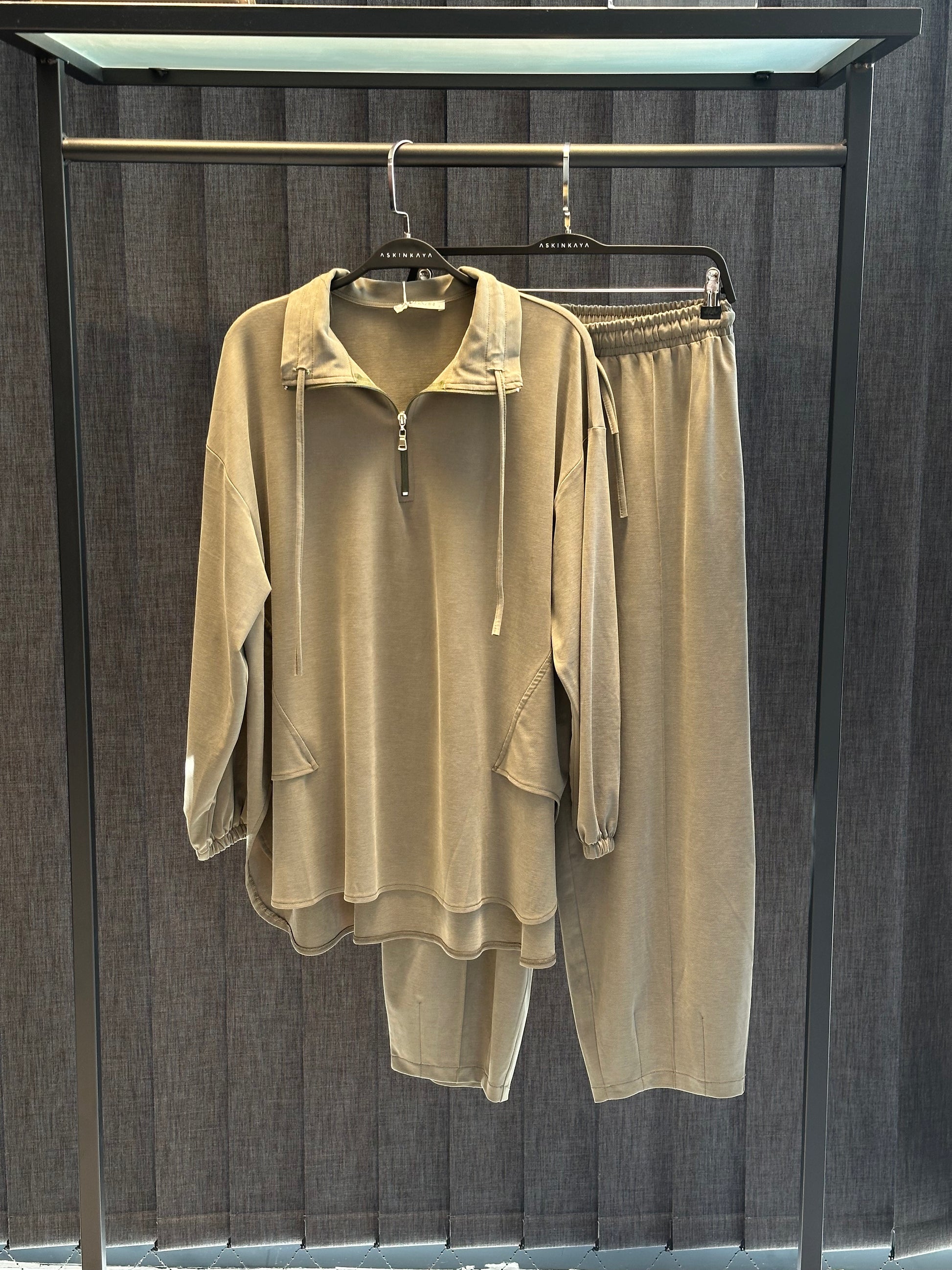 HAKİ DİK YAKALI FERMUARLI PANTOLON TAKIM