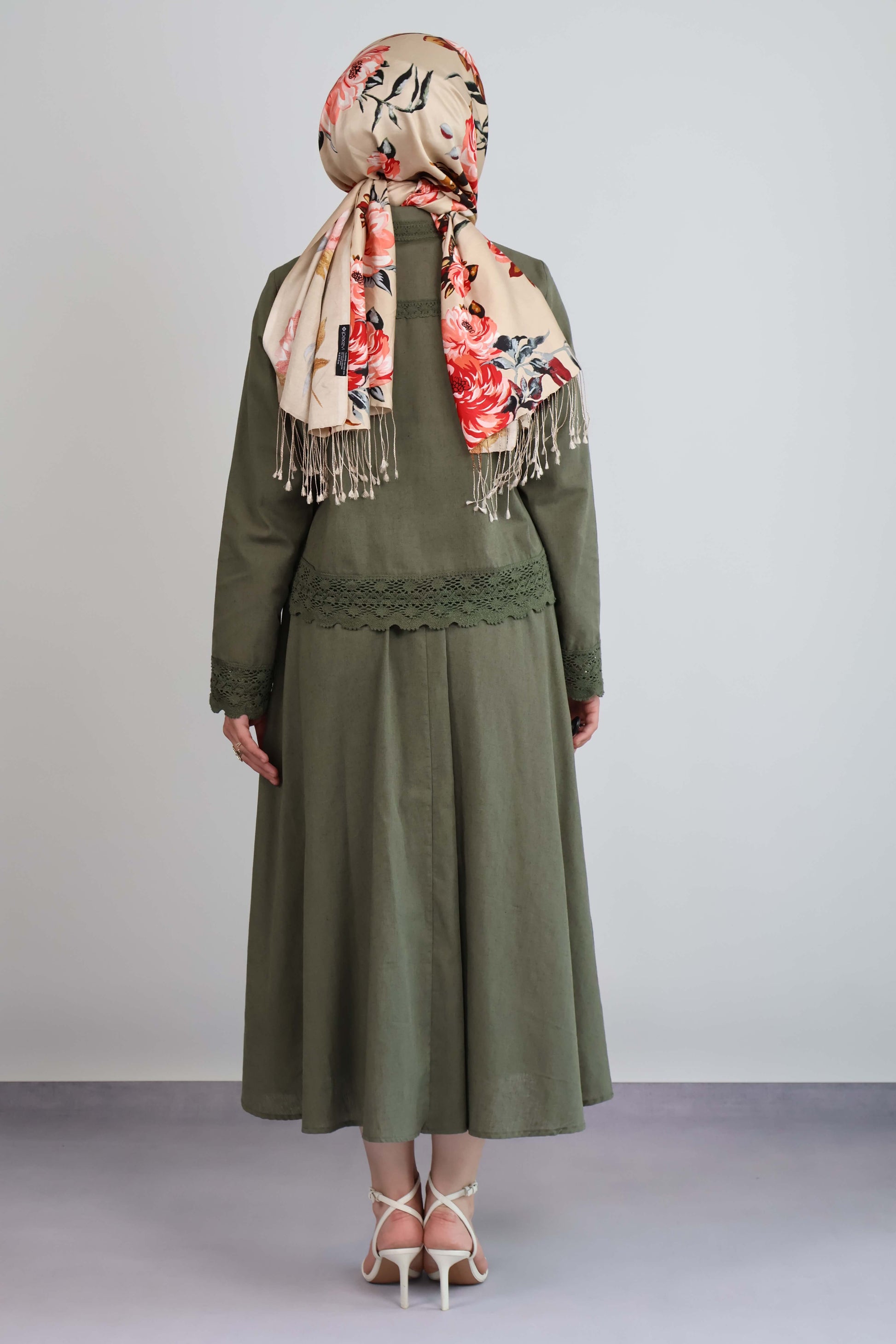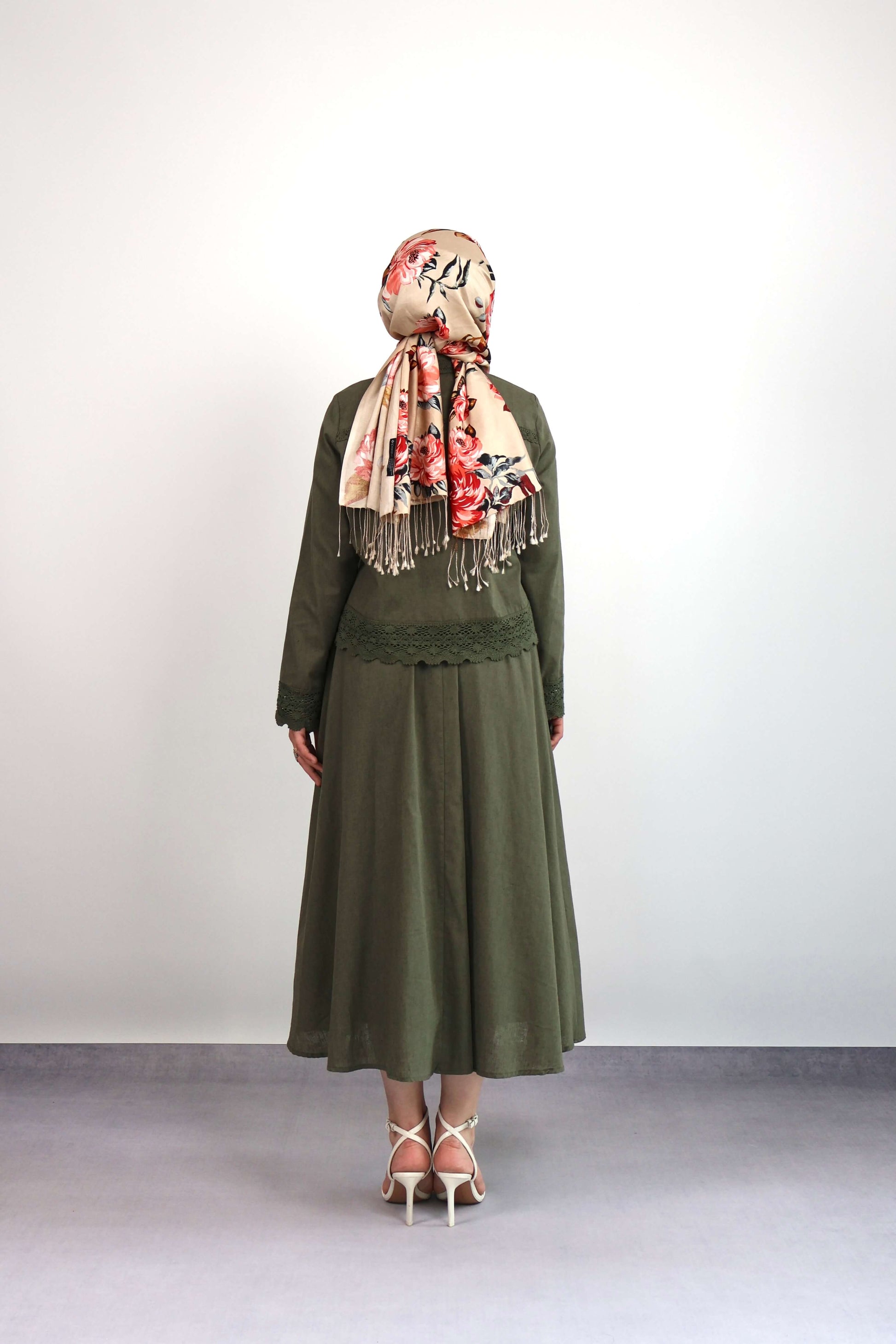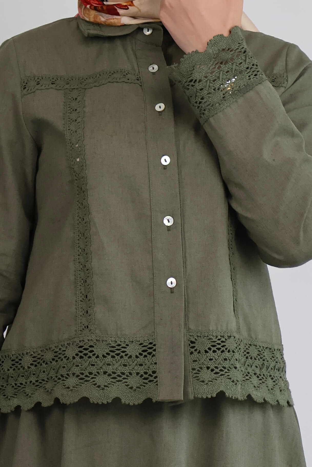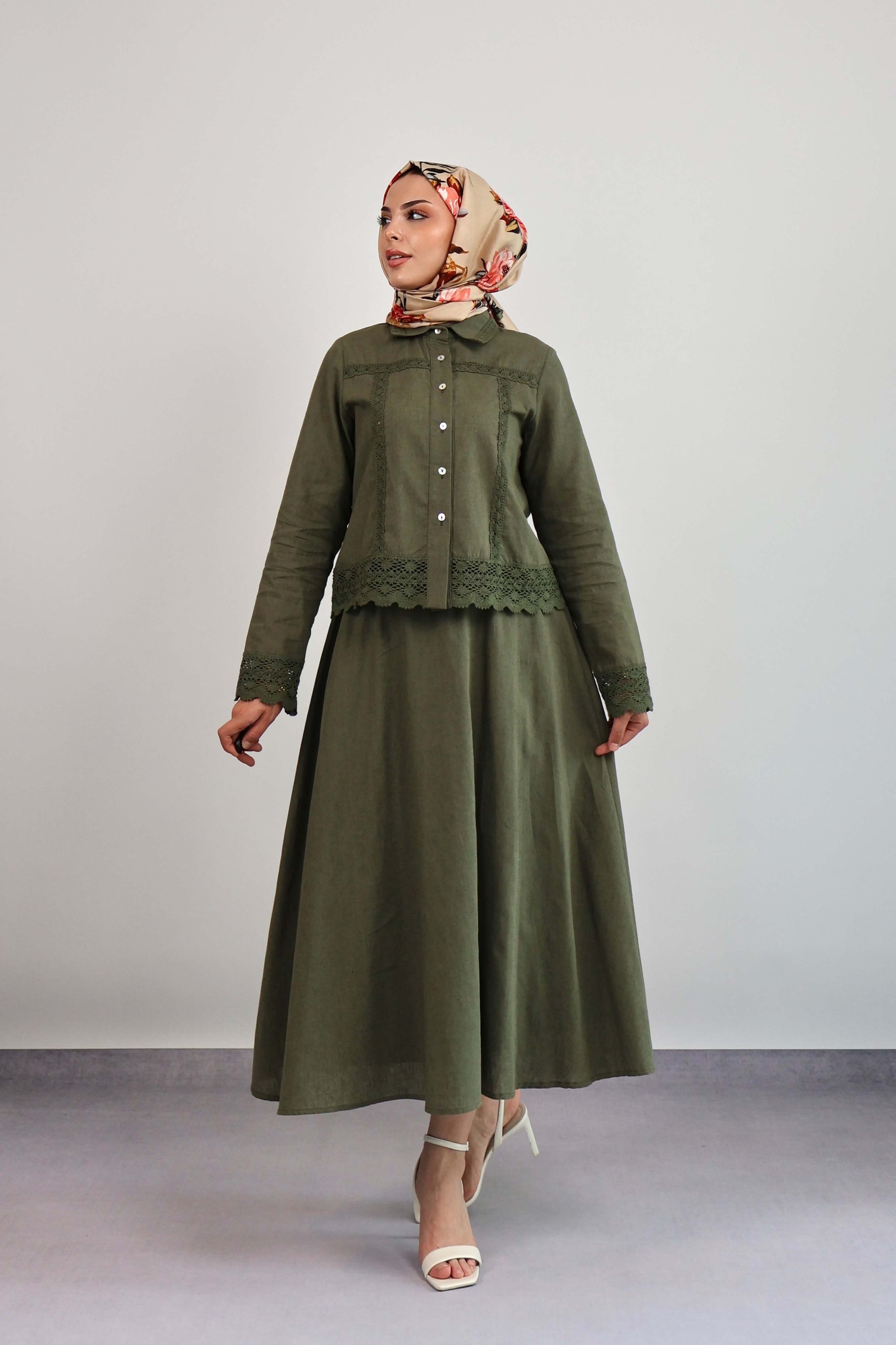 HAKİ YEŞİL GÜPÜR DETAYLI ETEKLİ TAKIM