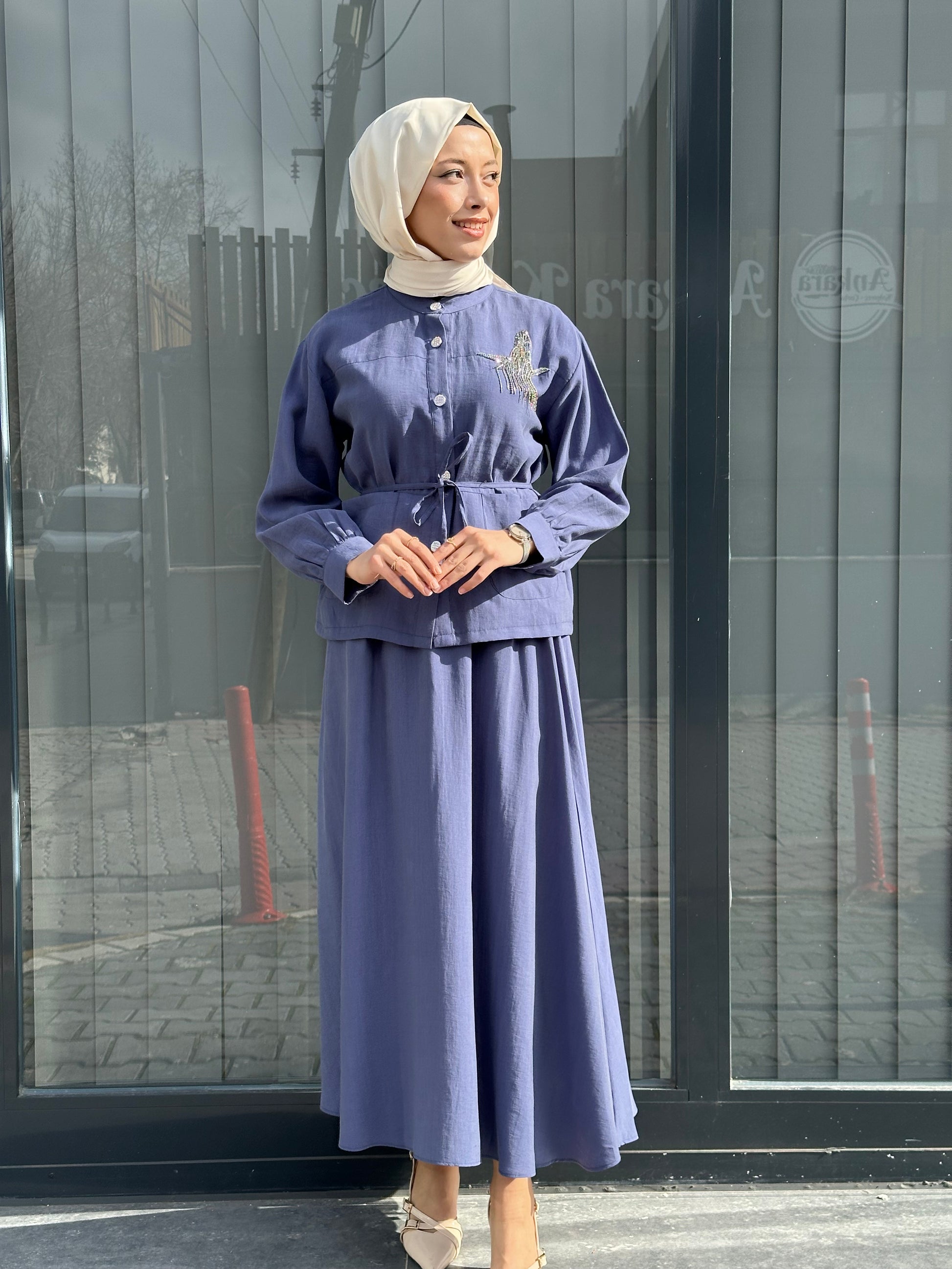 İNDİGO TAŞLI ETEKLİ TAKIM