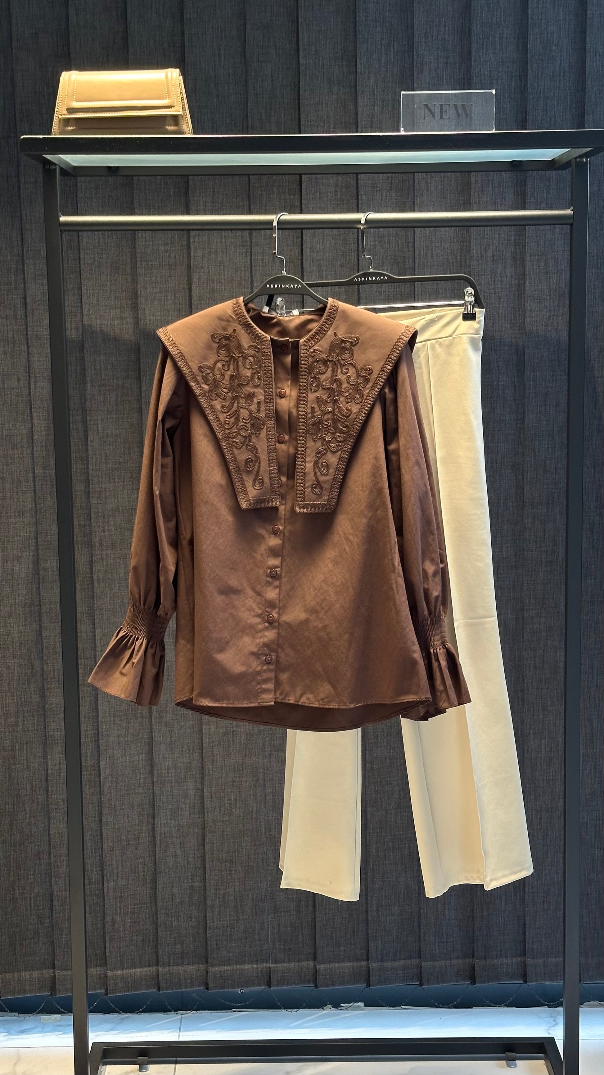 KAHVE GENİŞ YAKA FİSTO DETAYLI GÖMLEK
