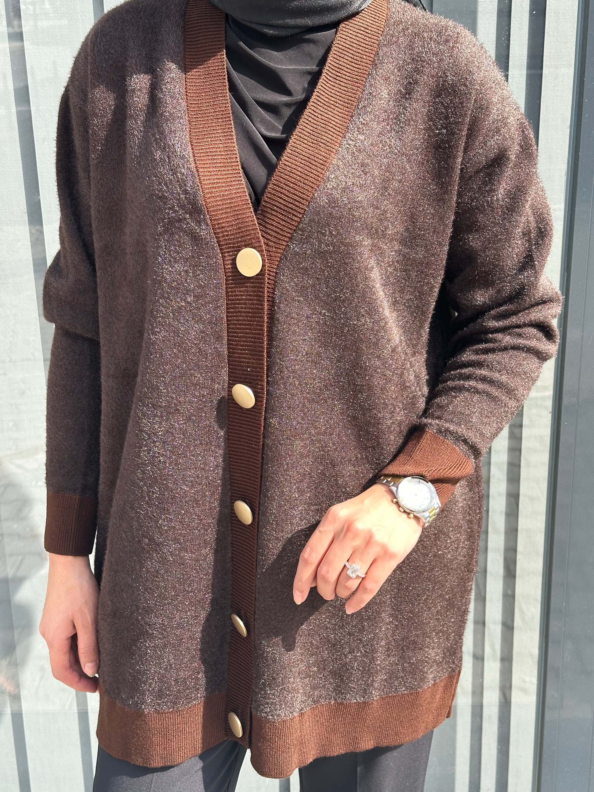 KAHVE ÖNDEN DÜĞMELİ ANGORA HIRKA