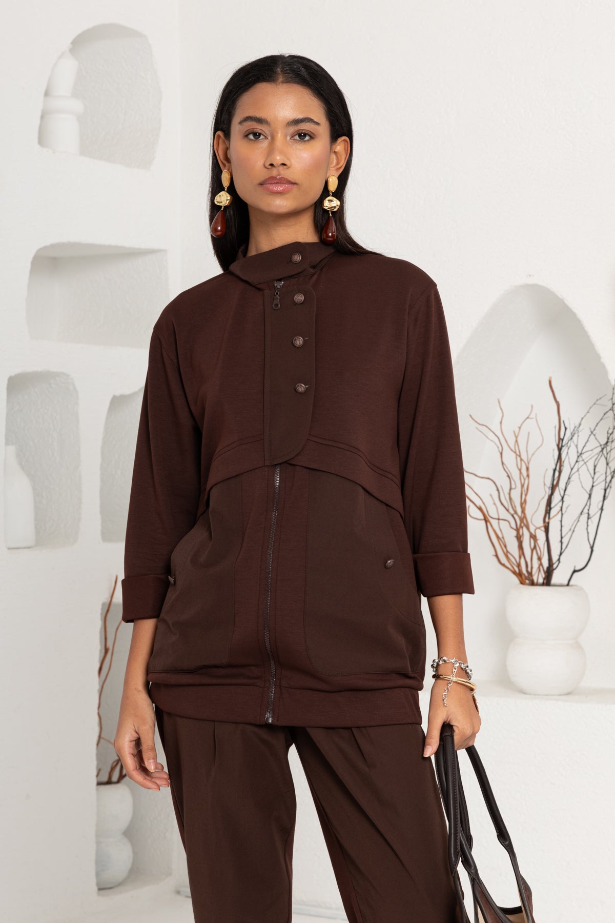 KAHVE OYSHO ÖNÜ PATLI PANTOLON TAKIM