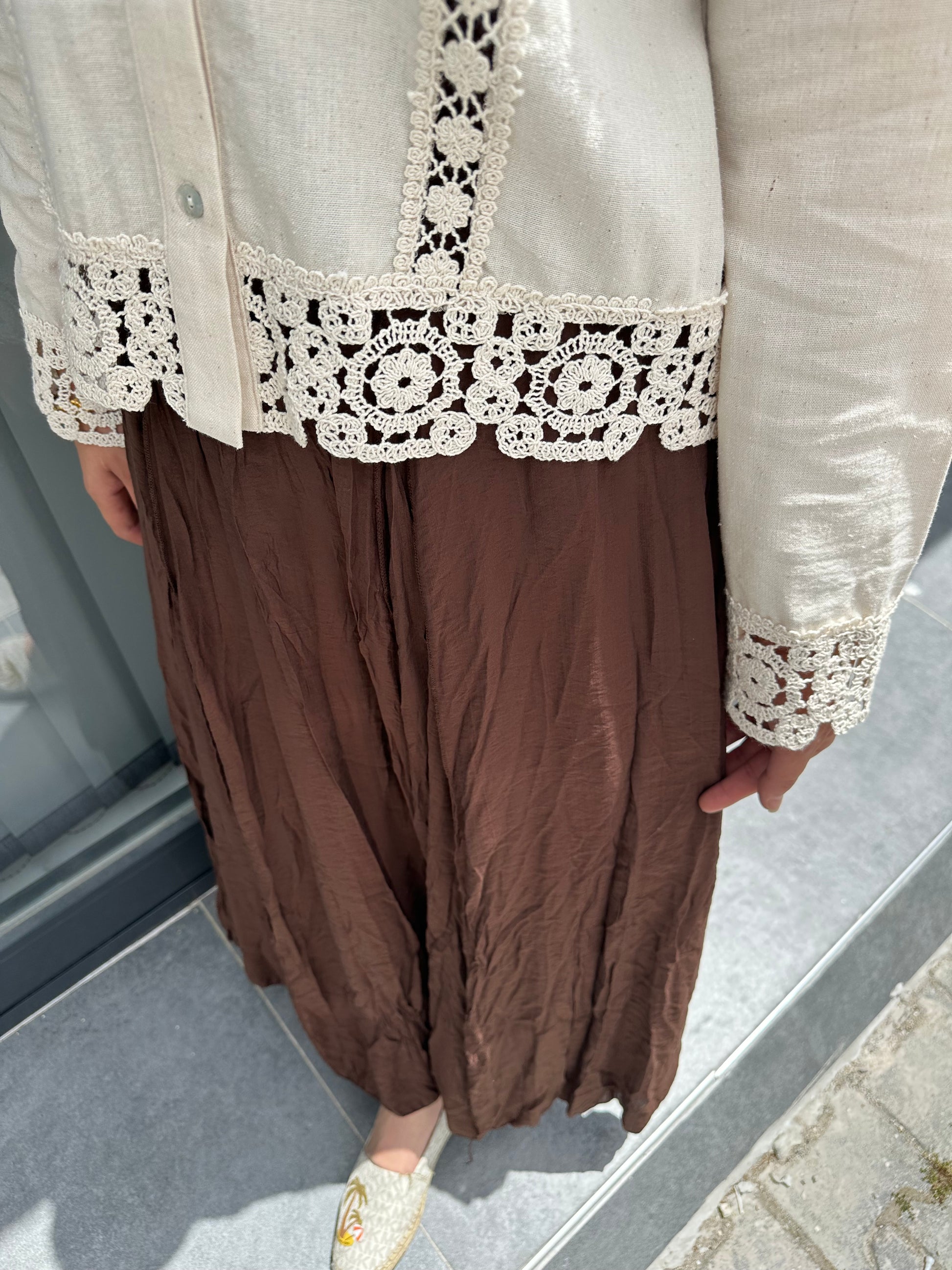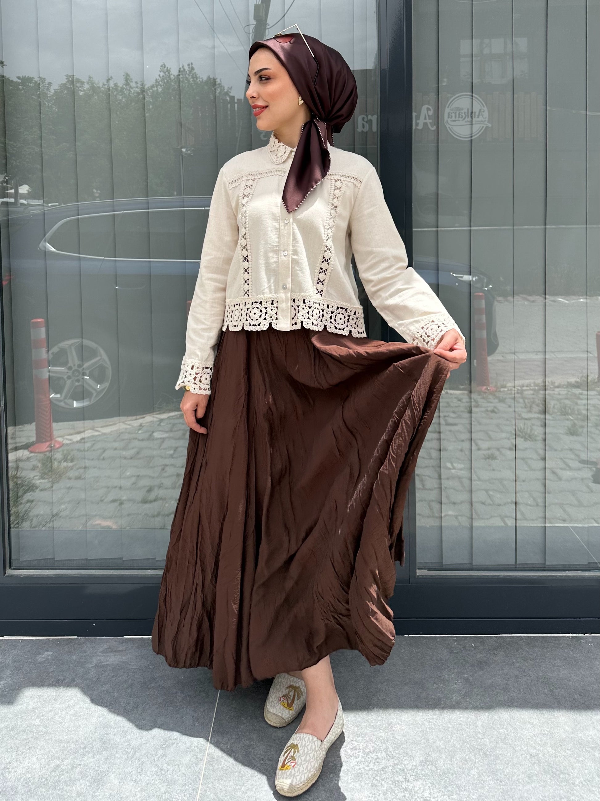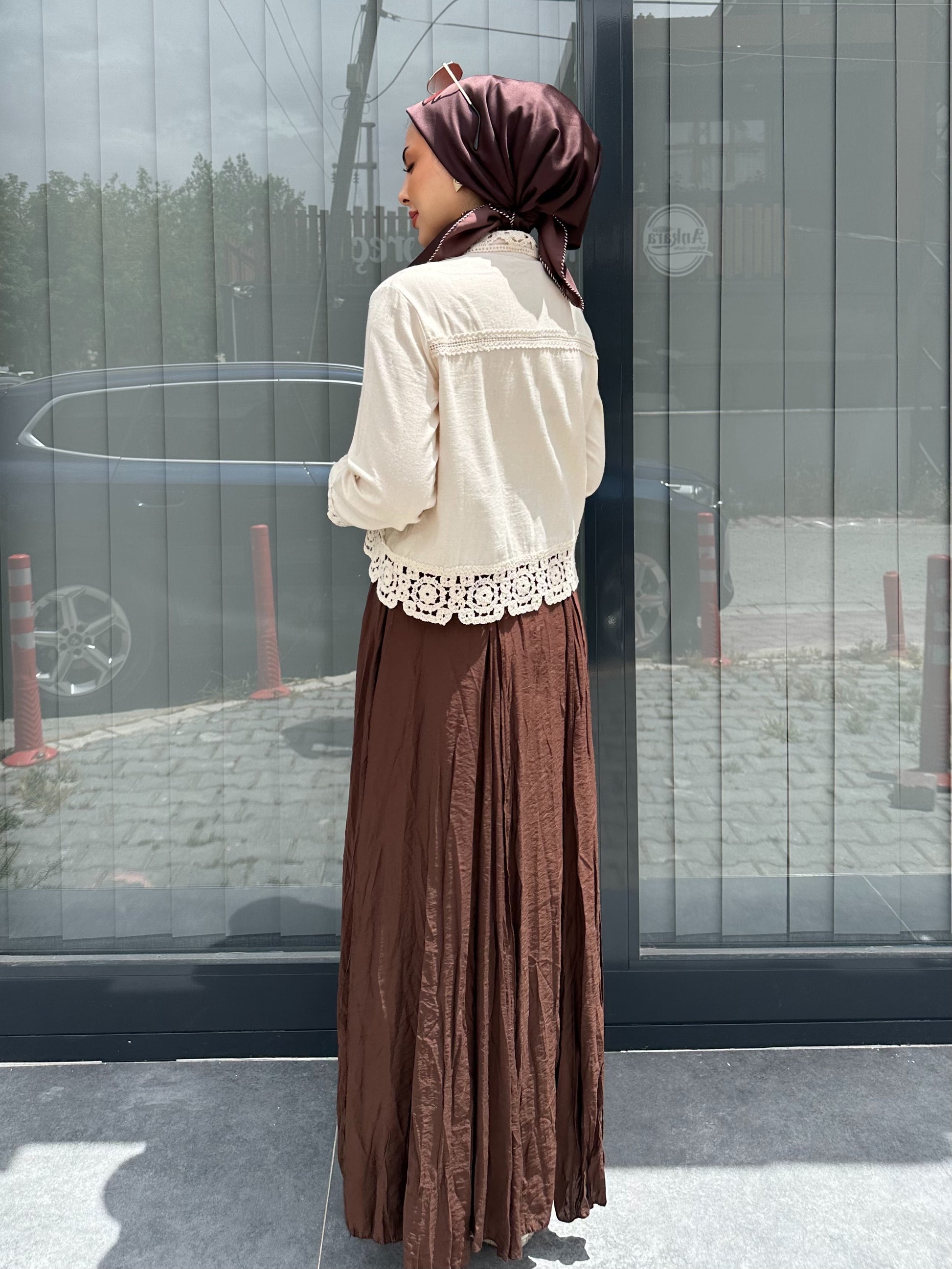 KAHVERENGİ KRAŞLI BONCUKLU UZUN ETEK