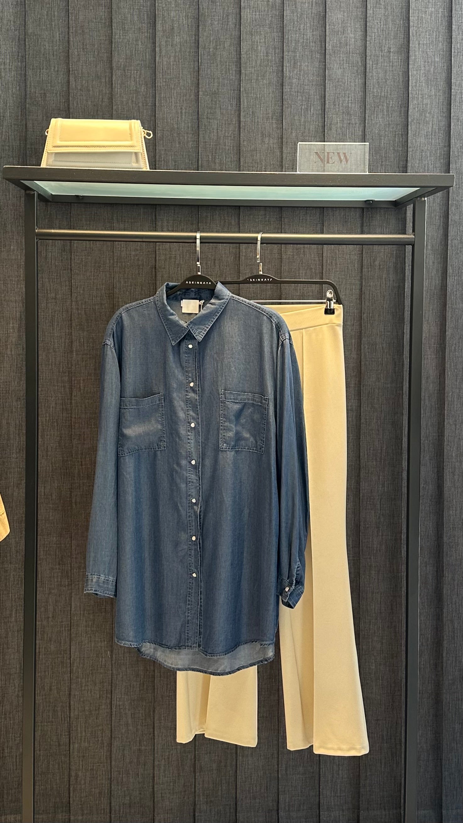 KOYU DENİM İKİ CEPLİ TENSEL GÖMLEK