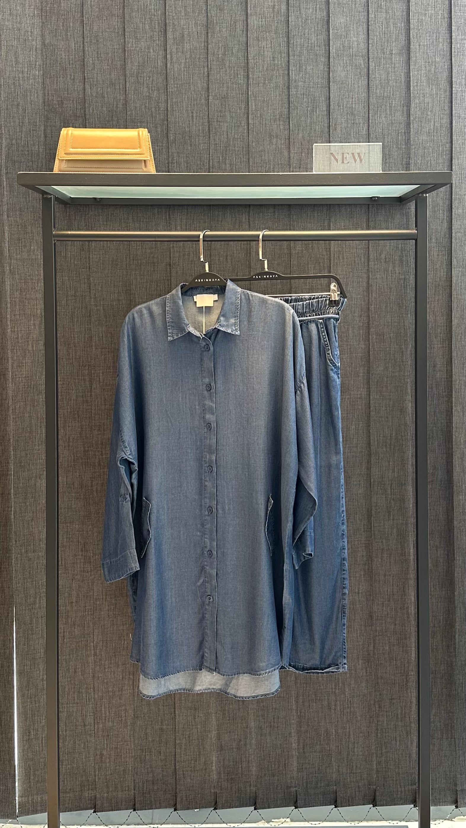 KOYU DENİM OVERSİZE TENSEL GÖMLEK