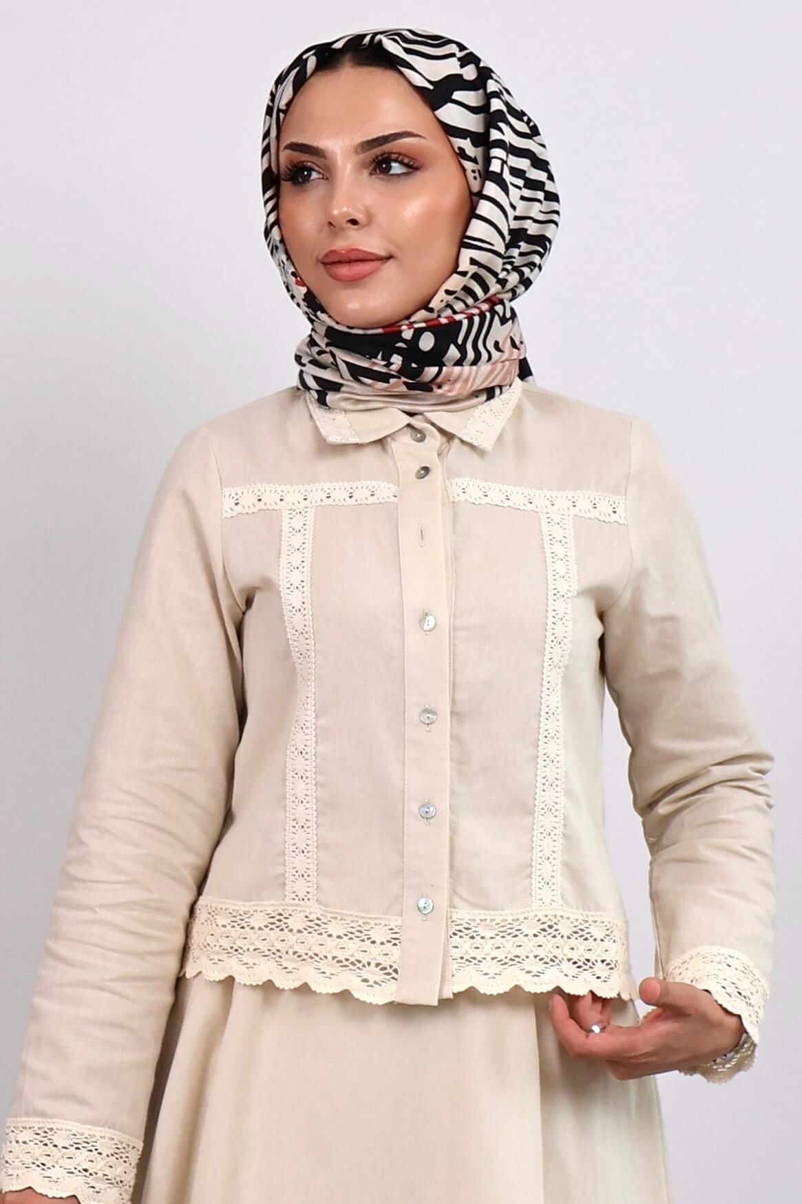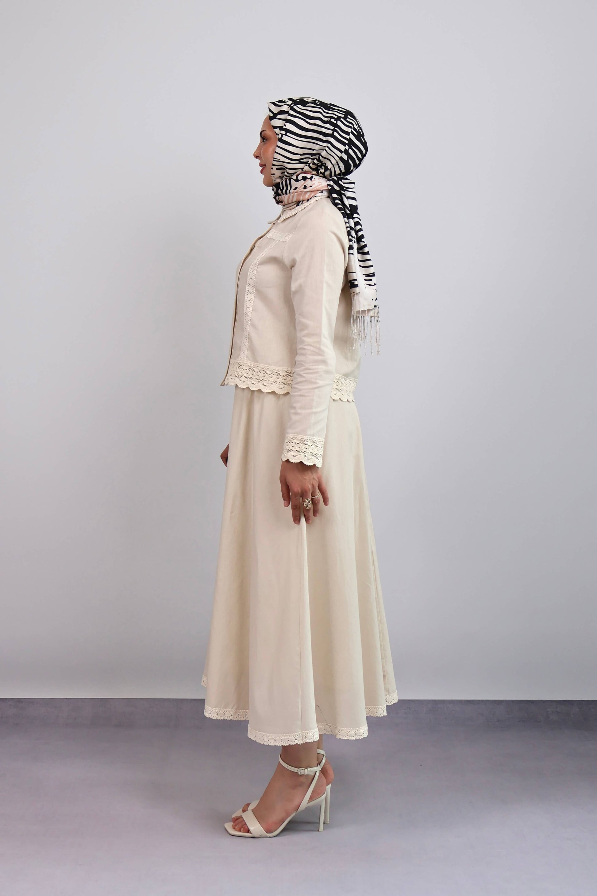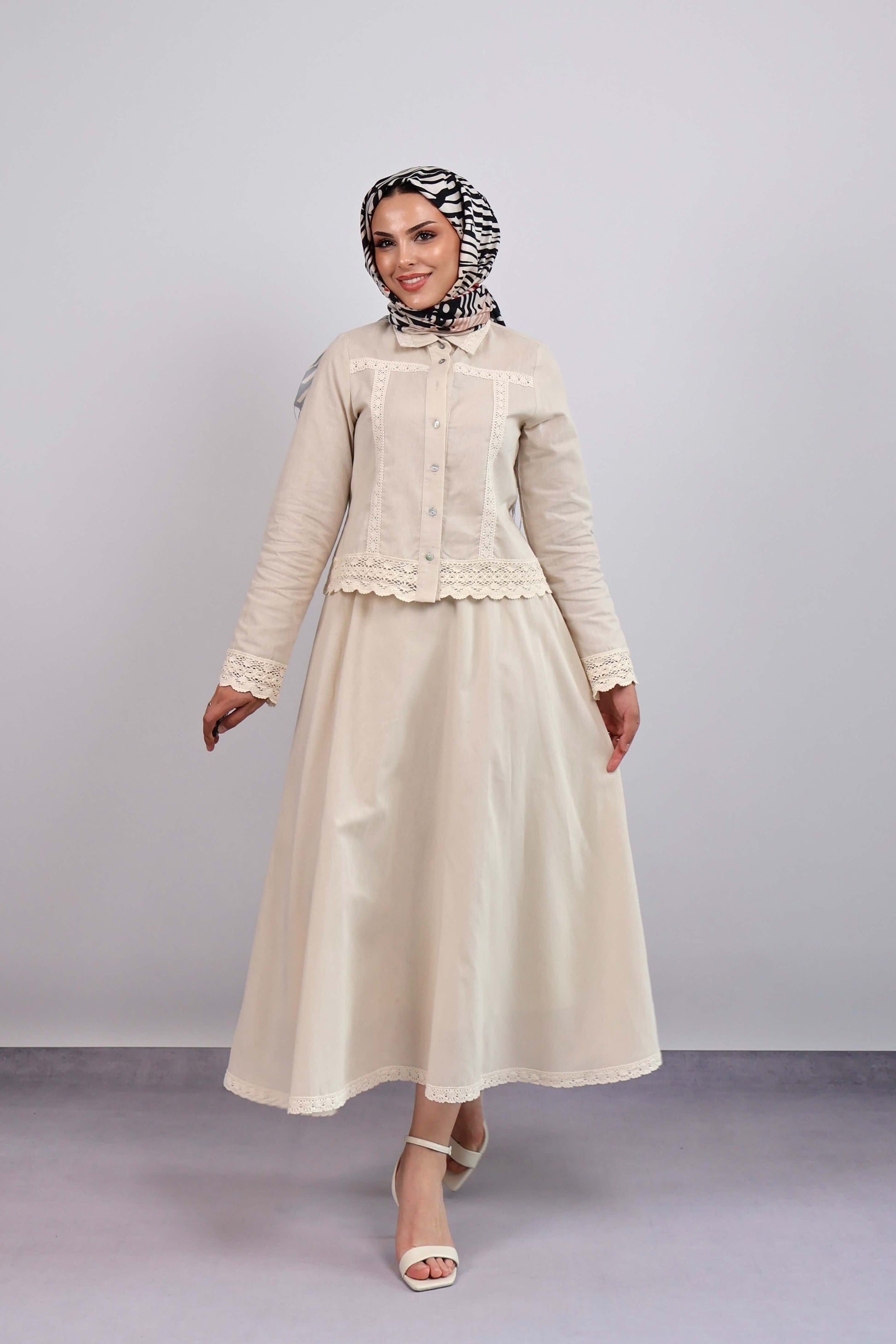 KREM GÜPÜR DETAYLI ETEKLİ TAKIM