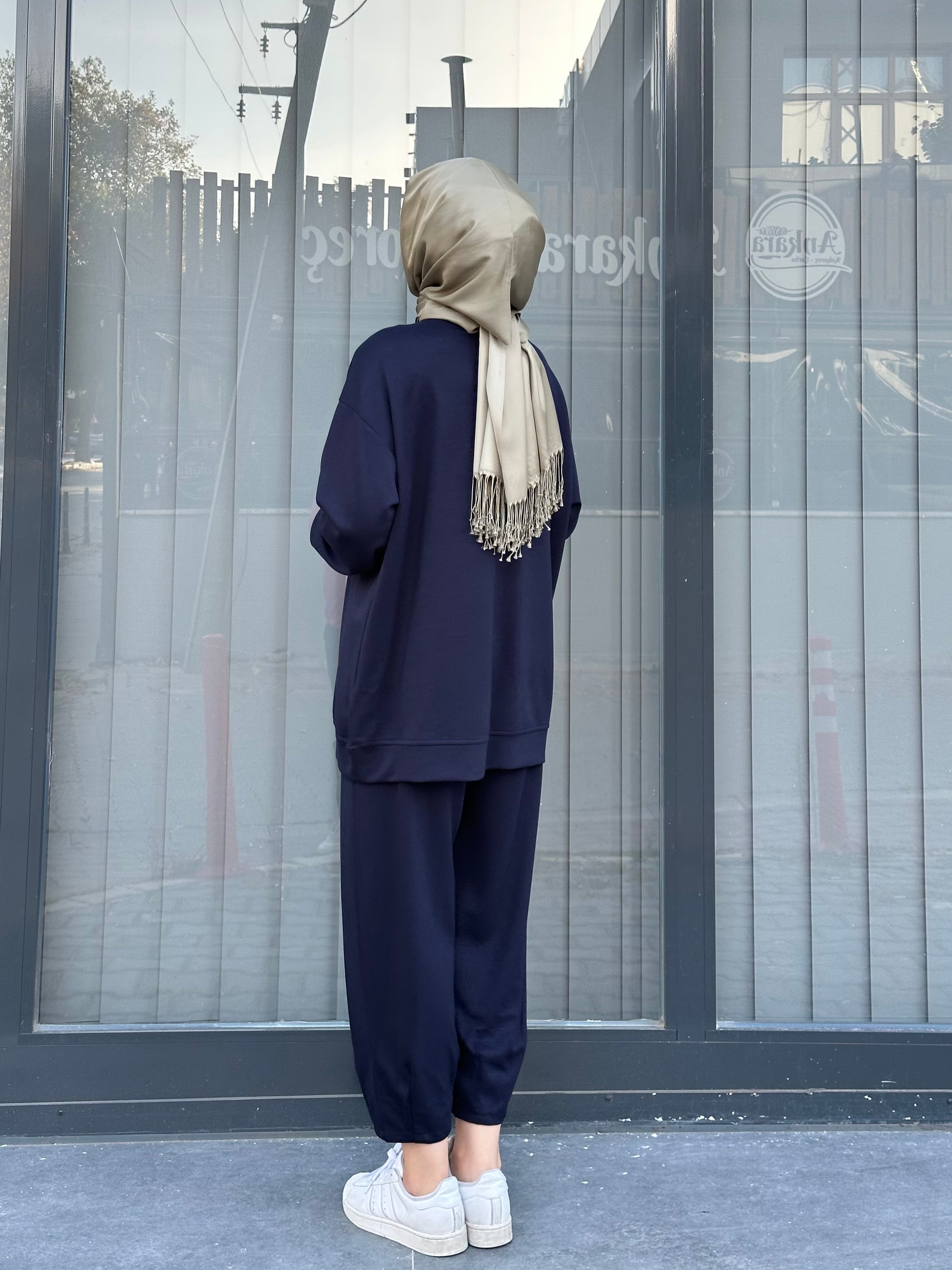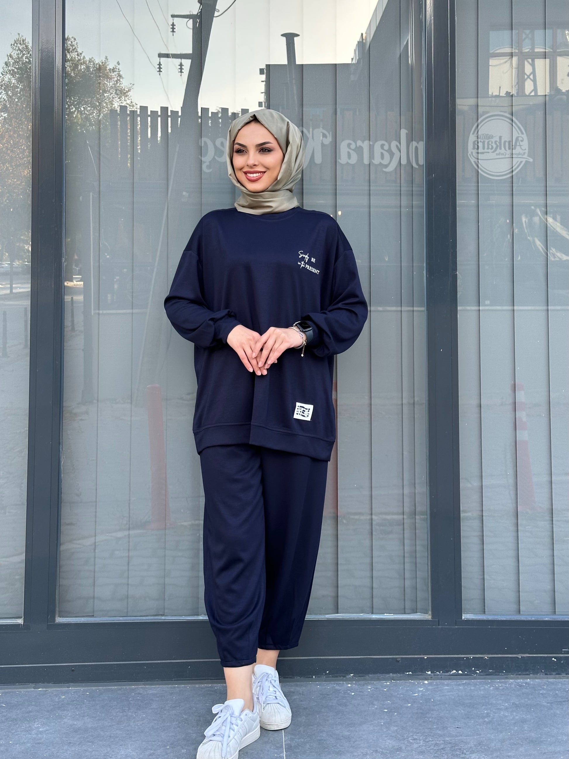 LACİVERT YÜKSEK BASKI VE ETİKET DETAYLI PANTOLON TAKIM