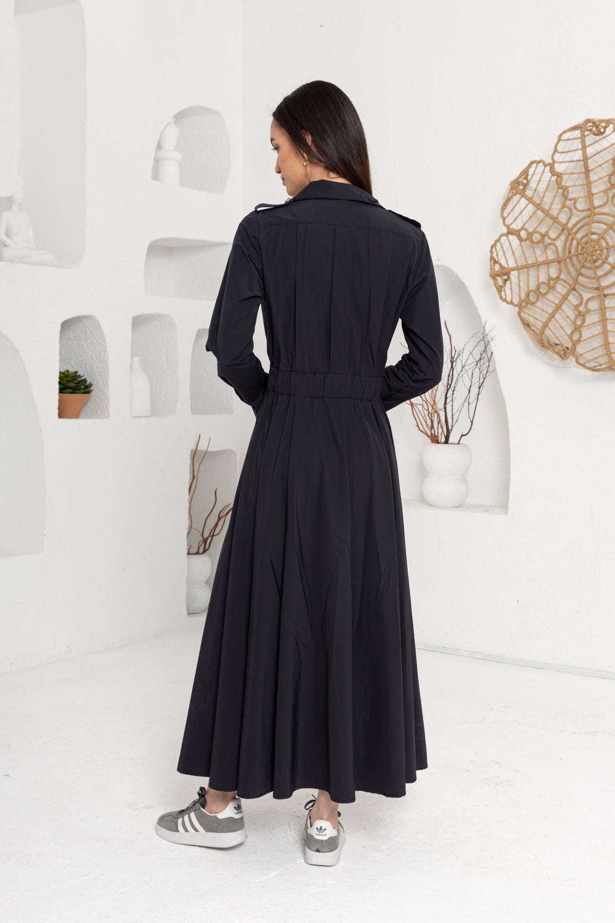 LACİVERT APOLET DETAY TRENÇ ELBİSE