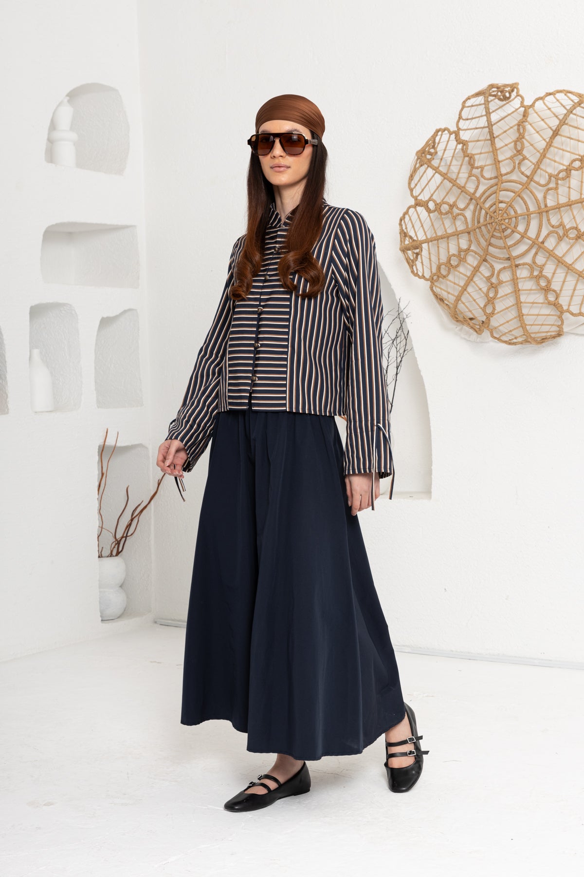 LACİVERT ÇİZGİLİ ÖNÜ BRİTLİ ETEK TAKIM