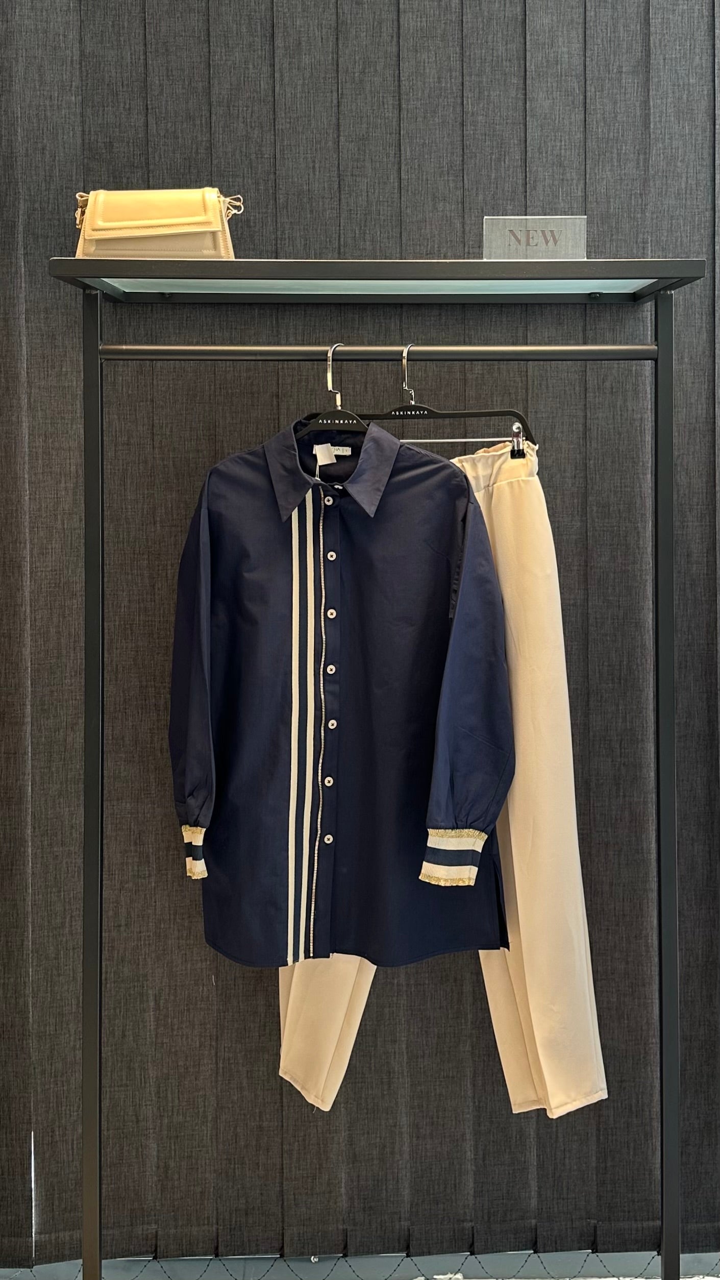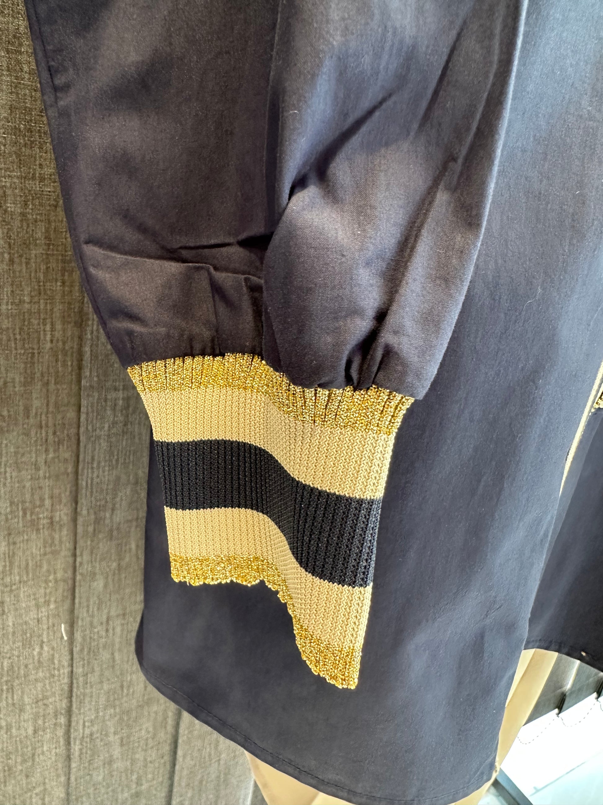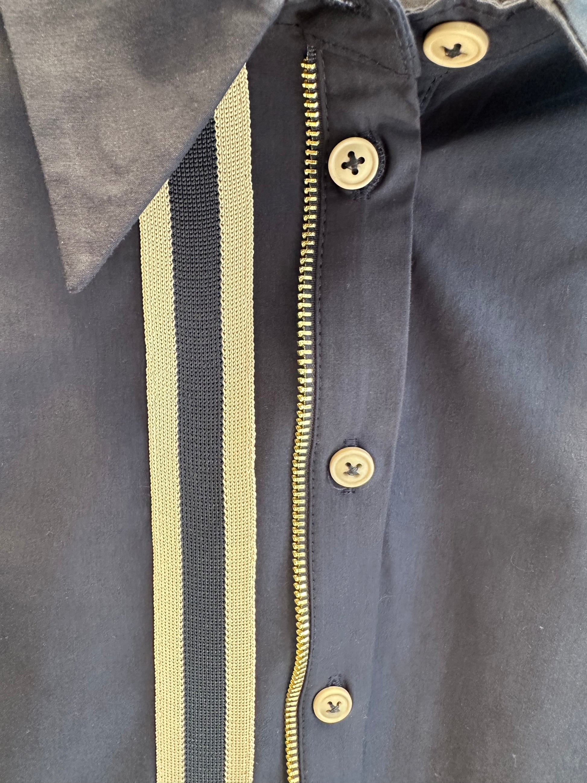 LACİVERT FERMUAR DETAYLI KOLLARI LASTİKLİ GÖMLEK