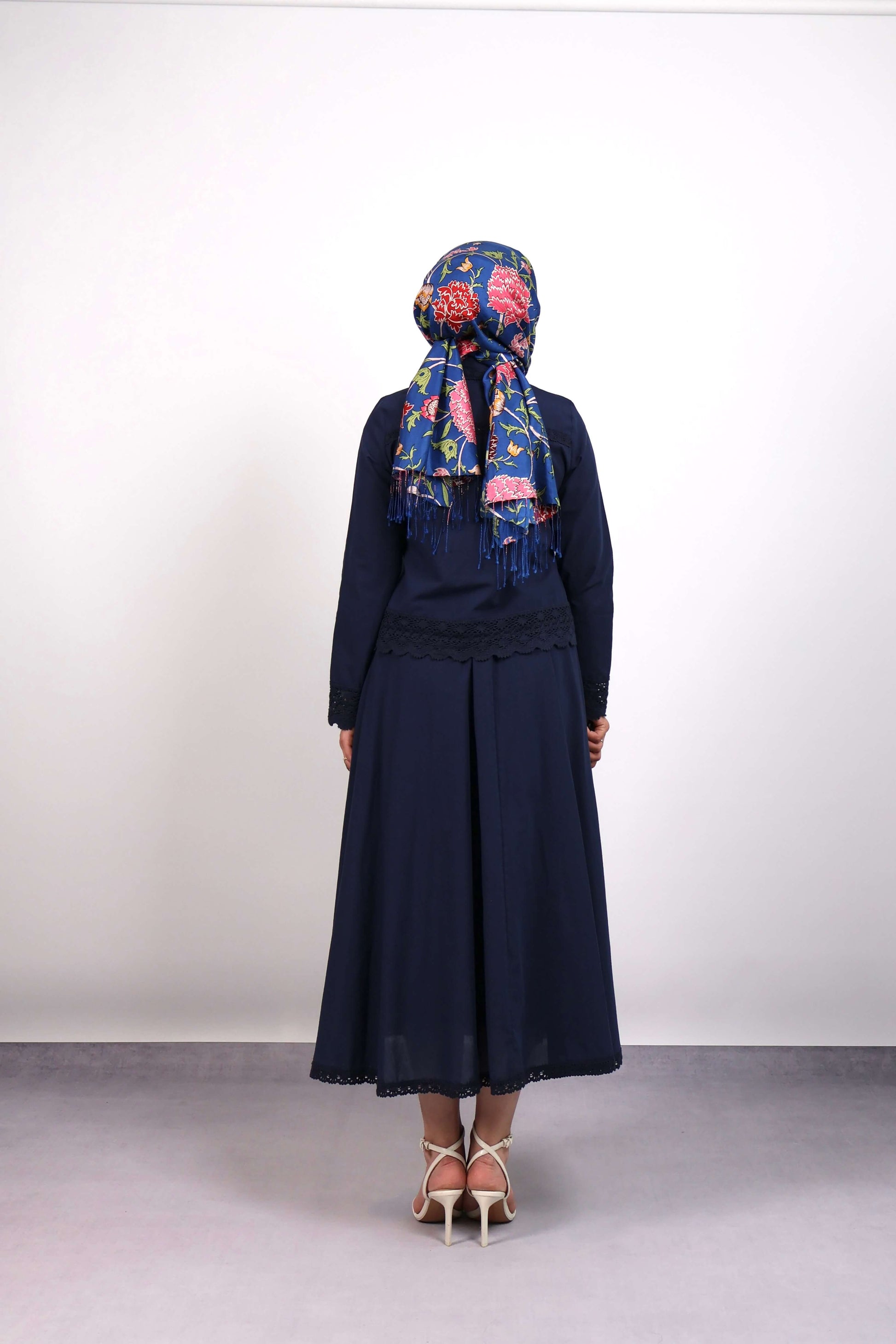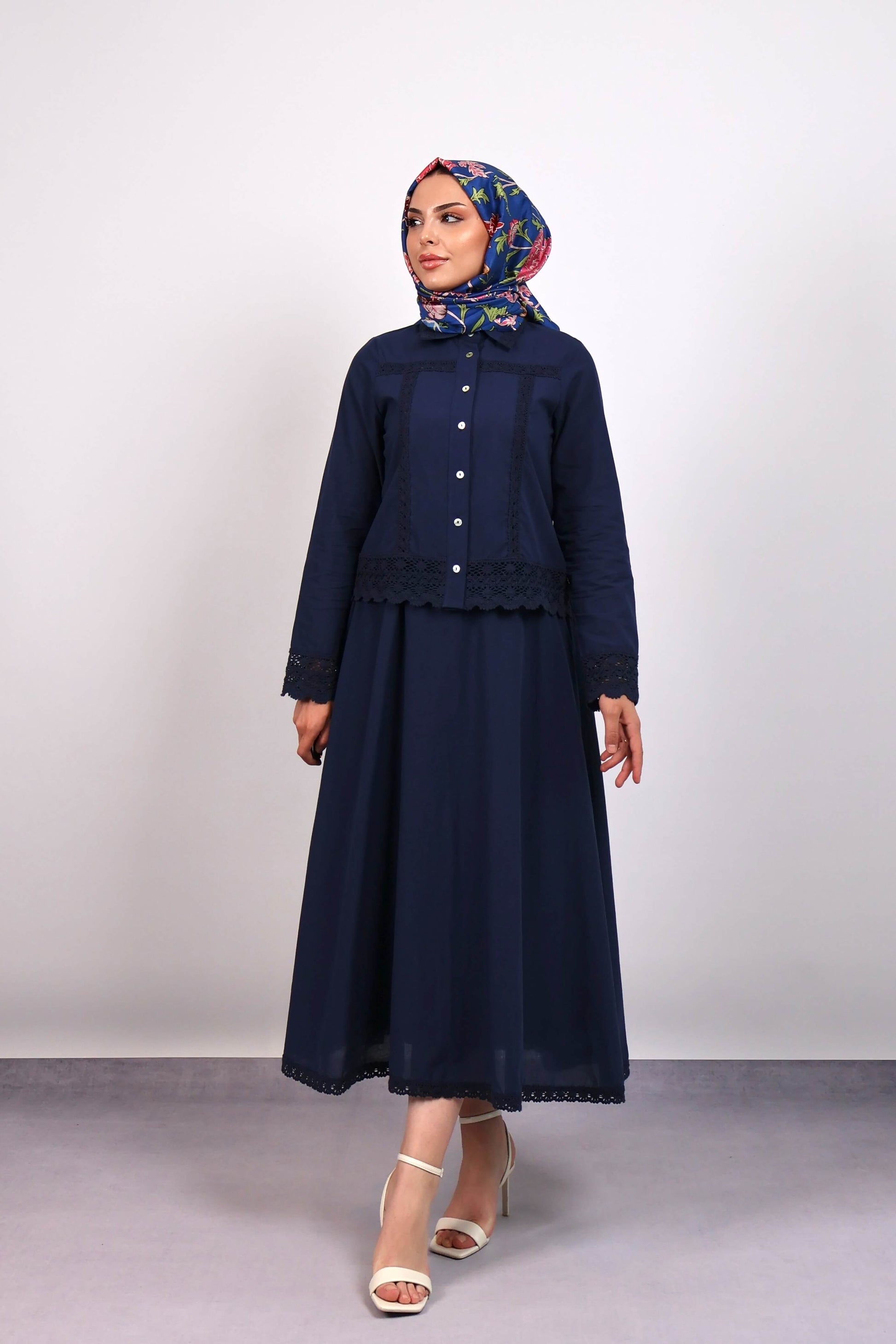 LACİVERT GÜPÜR DETAYLI VUAL ETEKLİ TAKIM